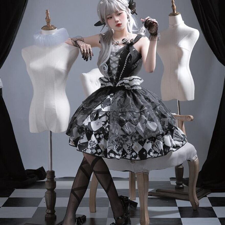 ゴシックなピエロモチーフのジャンパースカートセットアップです。