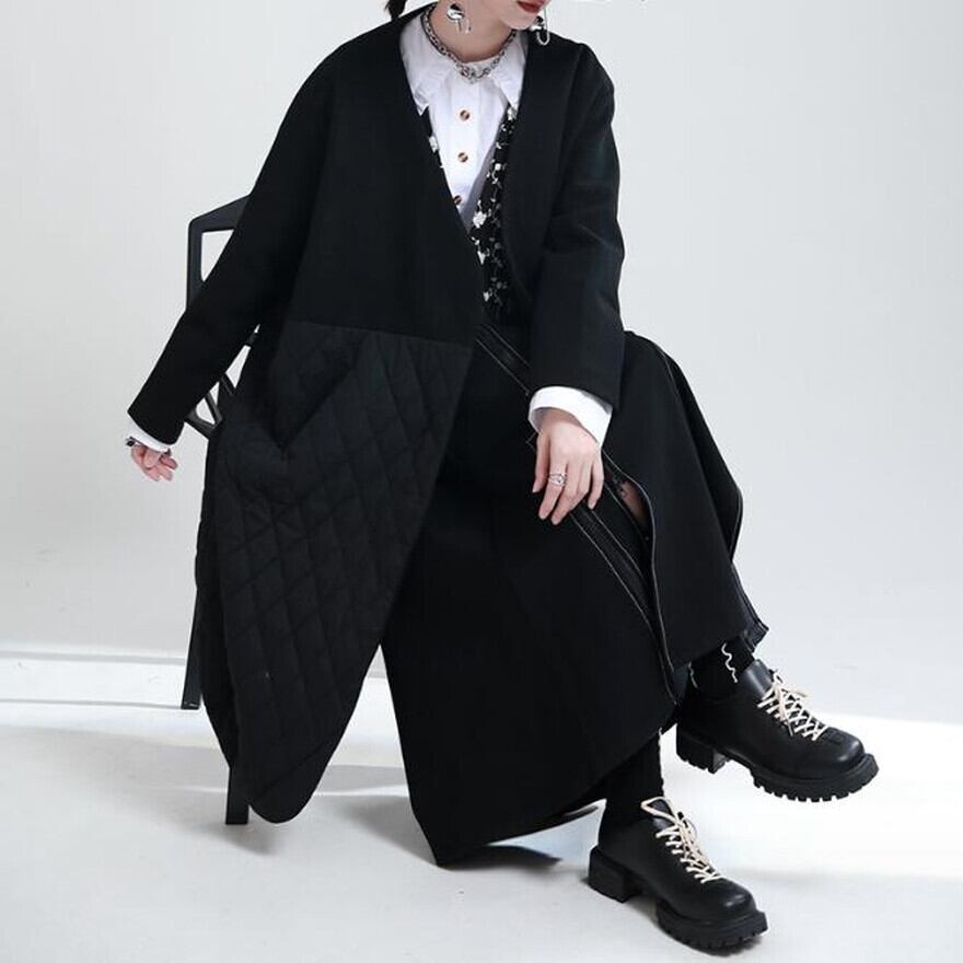 Vネックにキルティングのモード系コートです