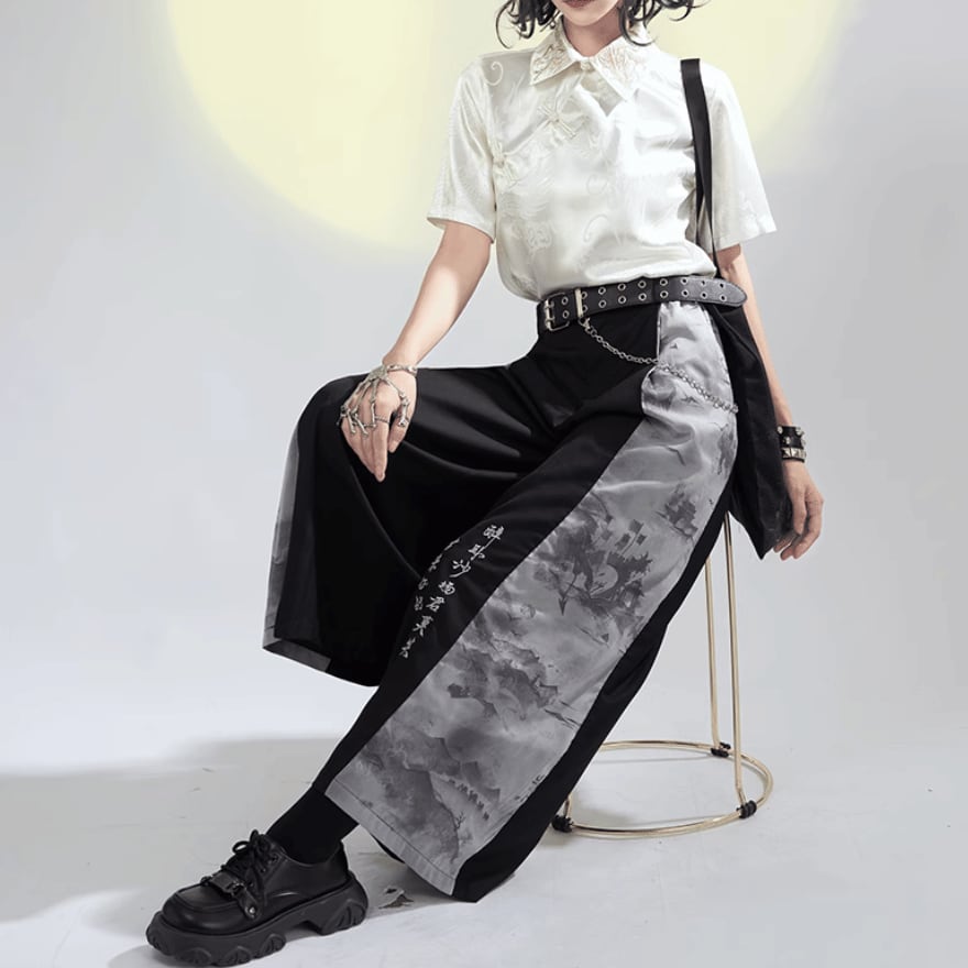 SEASONZ パンツ ユニセックス チャイナ風 ストリートファッション 病み可愛い かっこいい 控えめ 大人ゴシック