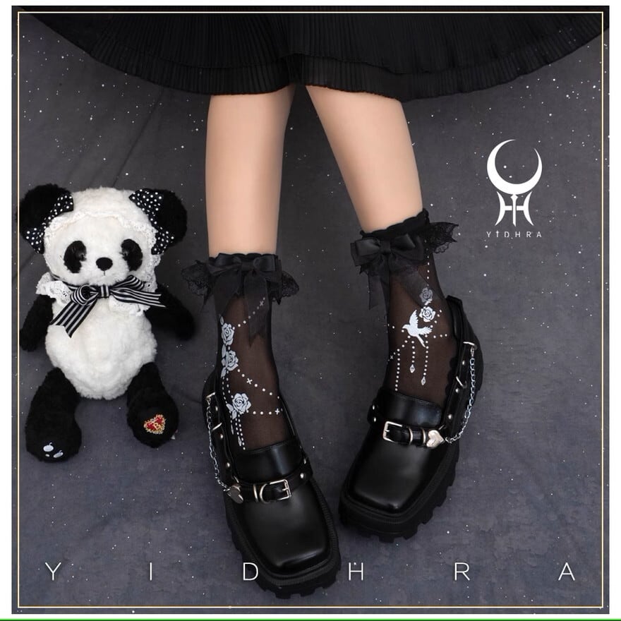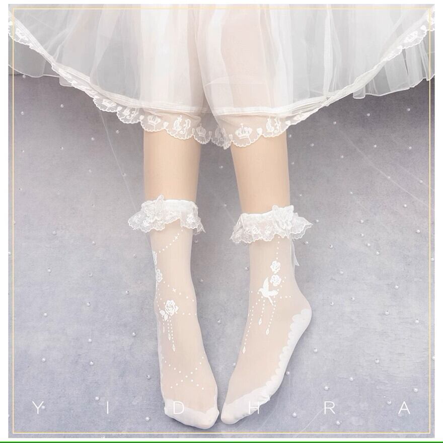 薔薇と小鳥柄のソックスにリボンのレースカバーのソックスです