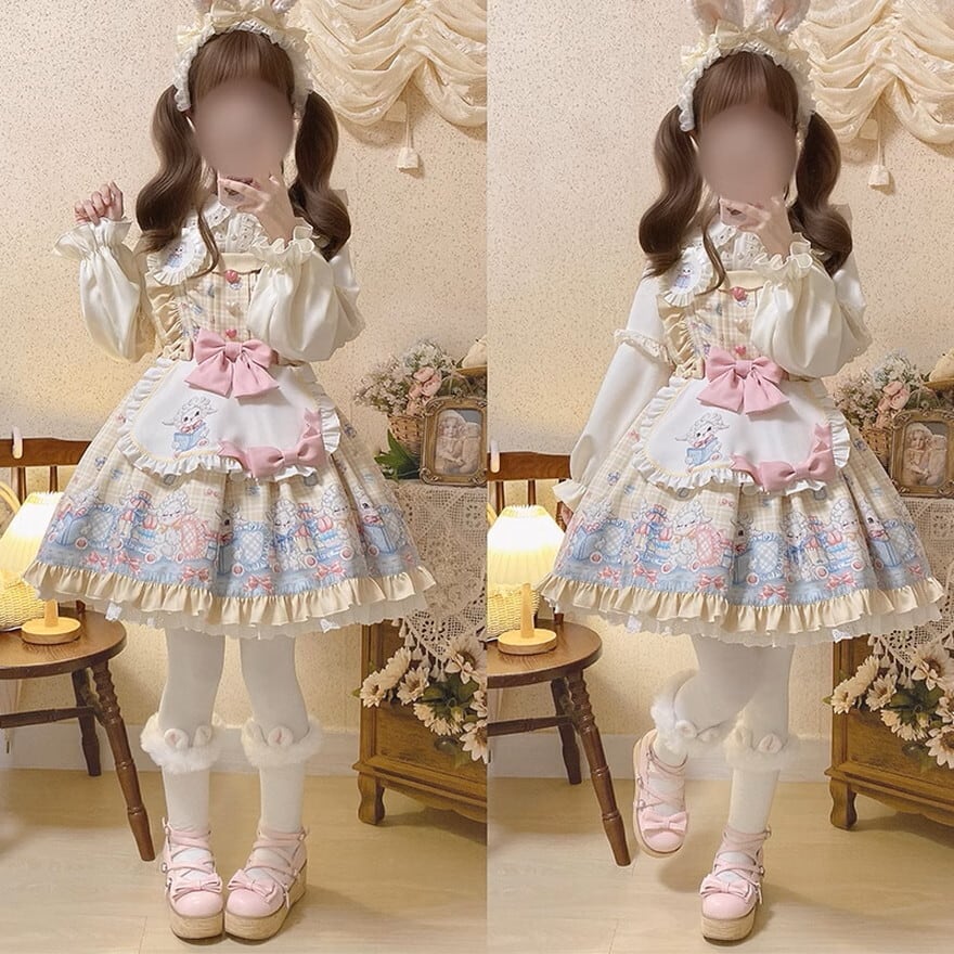 SEASONZ ゆめかわ ジャンパースカート エプロン付き メイド服 ゆるかわ ガーリー ゆめかわ