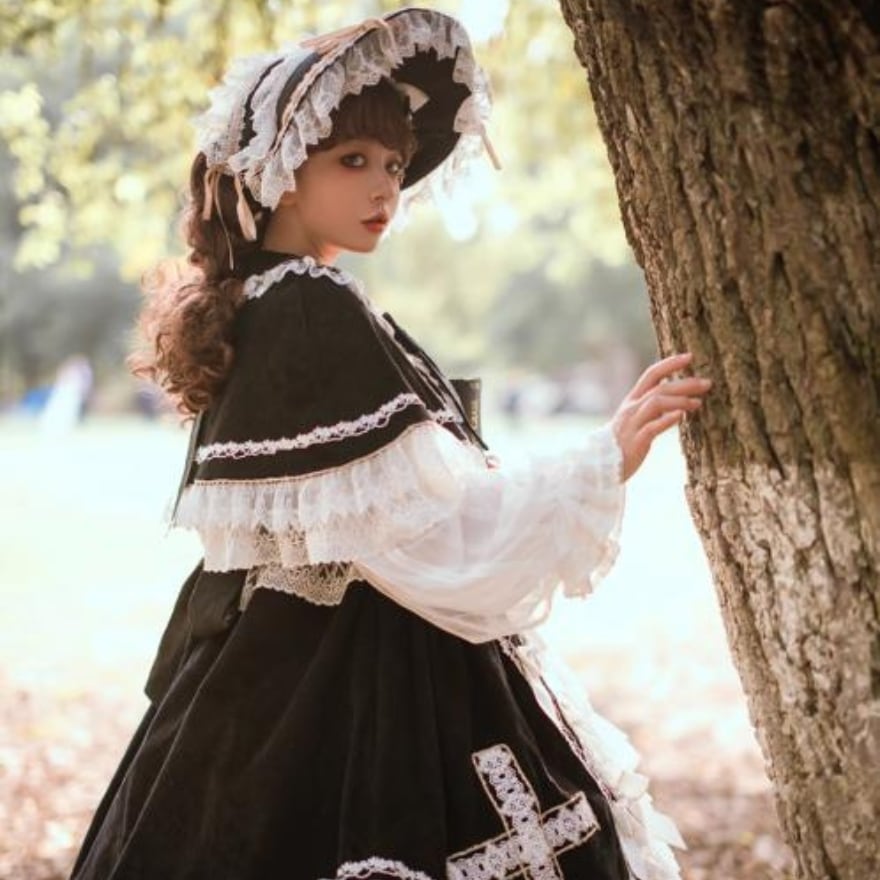たっぷりレースにフリルがあしらわれたゴスロリ十字架ドレスです