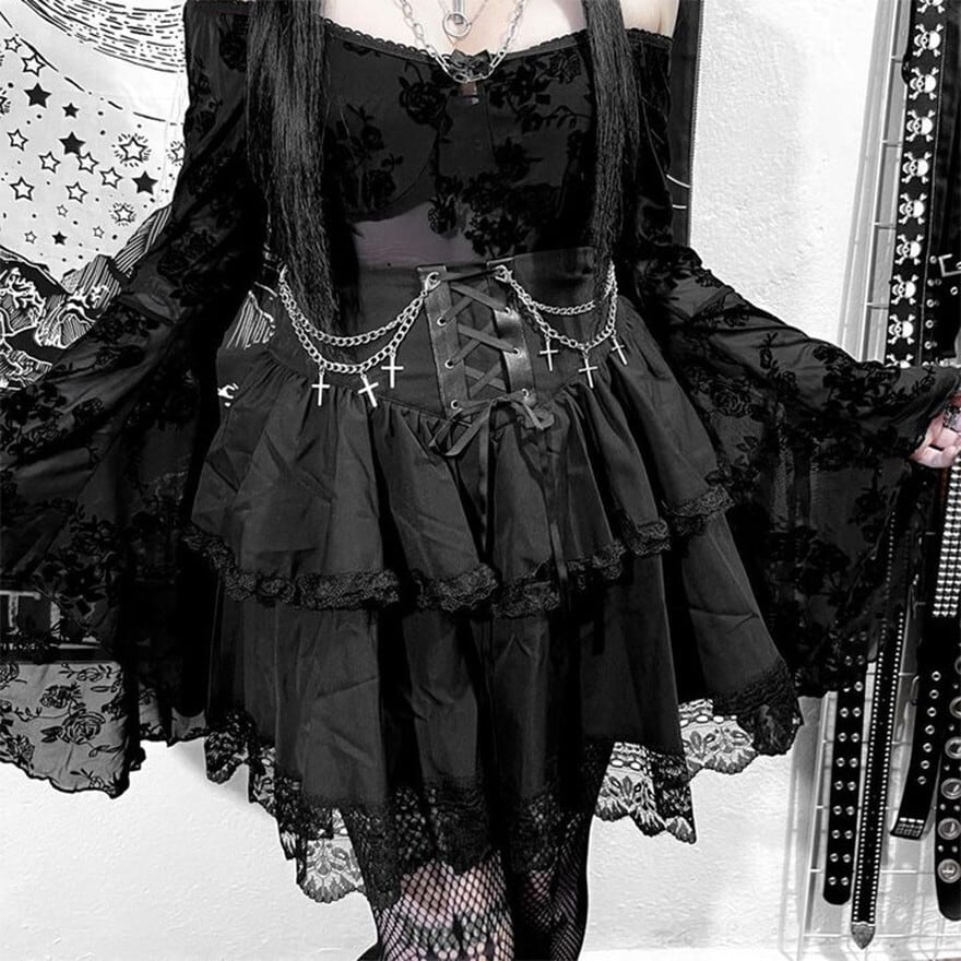 SEASONZ ミニスカート ハードゴシック レース 編み上げ 原宿スタイル 大人ゴシック おしゃれ