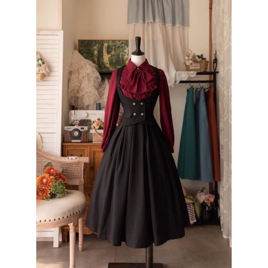 写真のブラウスとコーデアップで上品なクラロリスタイルが叶うベストです