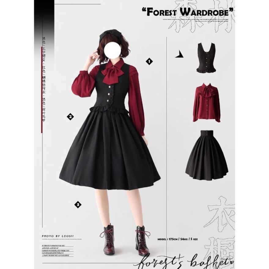 写真のブラウスとコーデアップで上品なクラロリスタイルが叶うベストです