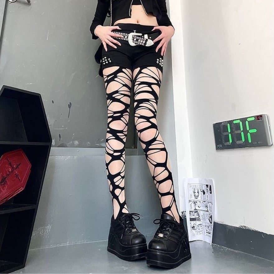 ストリート系のクラッシュダメージの蜘蛛の巣ストッキングです。