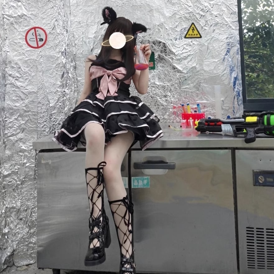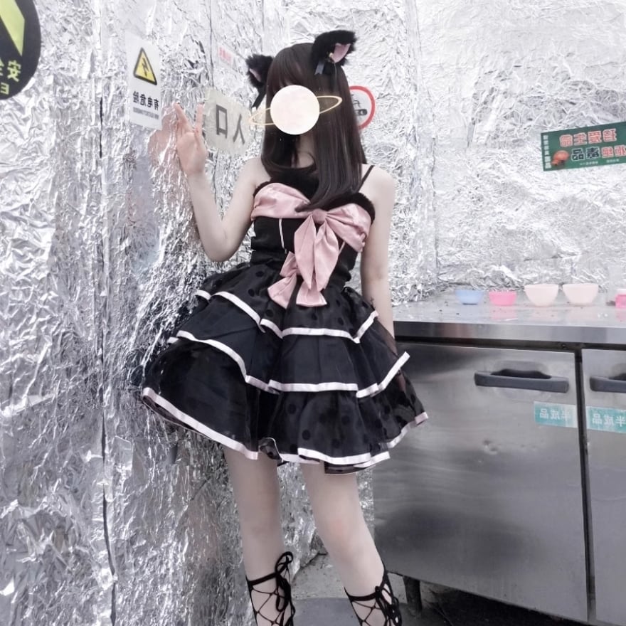 SEASONZ 梦梦の工作室 ゆめかわ セットアップ 黒猫 ベビードール 原宿スタイル ロリータファッション ろりぃた服