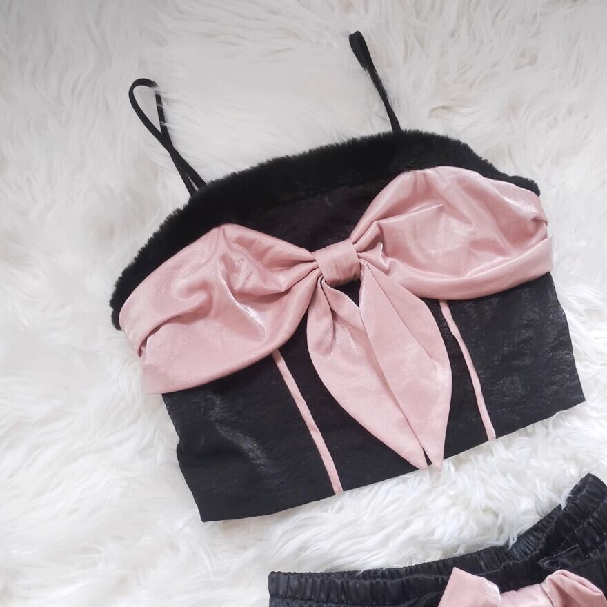 黒猫をモチーフにしたヘルシーな着丈のゆめかわセットアップです。