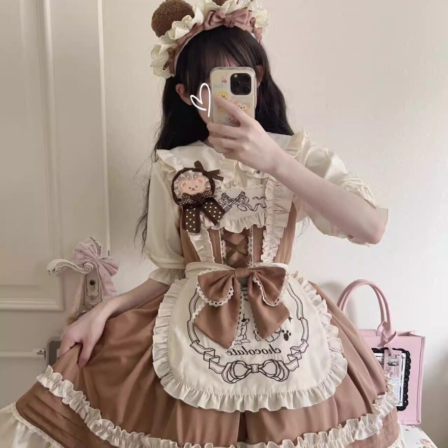 たっぷりフリルのくまちゃんエプロンがキュートなメイド服です