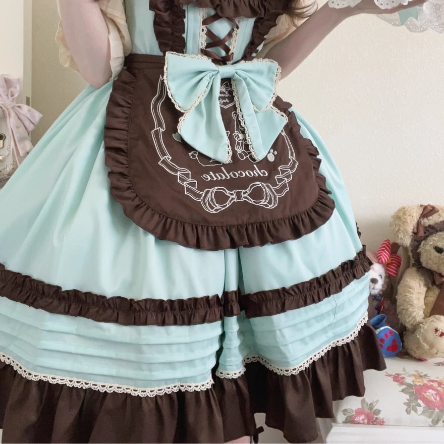 メイド服 ゆめかわ チョコミント ジャンパースカート エプロン メイド服 くまちゃん 刺繍 ガーリー ゆめかわいい