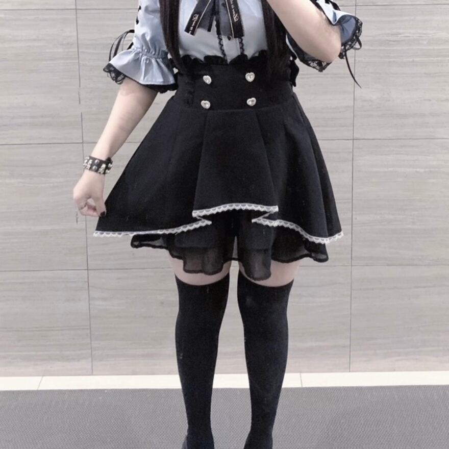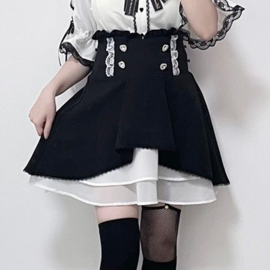 SEASONZ 地雷系 地雷女子 スカート ハイウエスト シフォン レイヤード ミニ丈 ハートボタン 病み可愛い JKスタイル 原宿スタイル 地雷服 かわいい