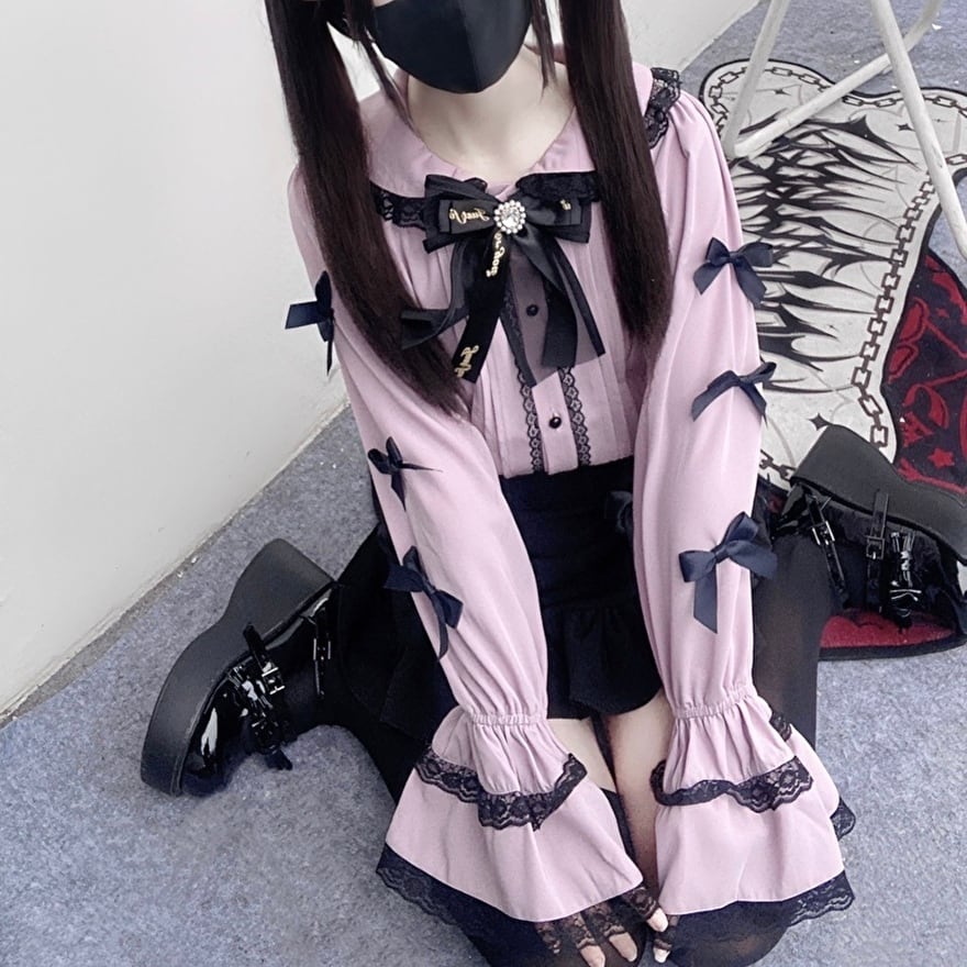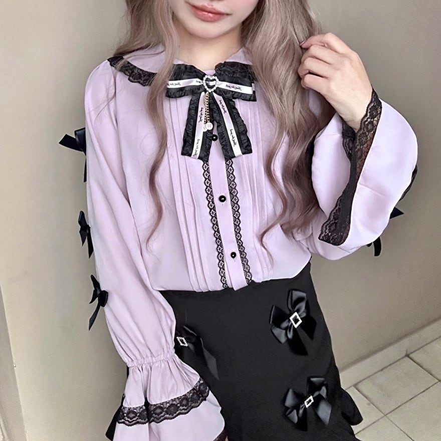 ちょっぴり病みかわいい地雷系ボウノットリボンのブラウスです。