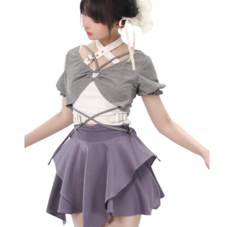 ハイウエストなシルエットにレイヤード風のアシンメトリーなミニスカです