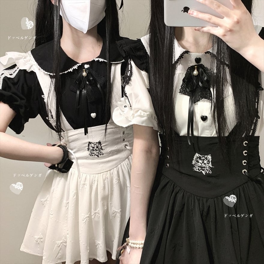病み可愛い地雷系ファッションのハイウスト編み上げミニスカです