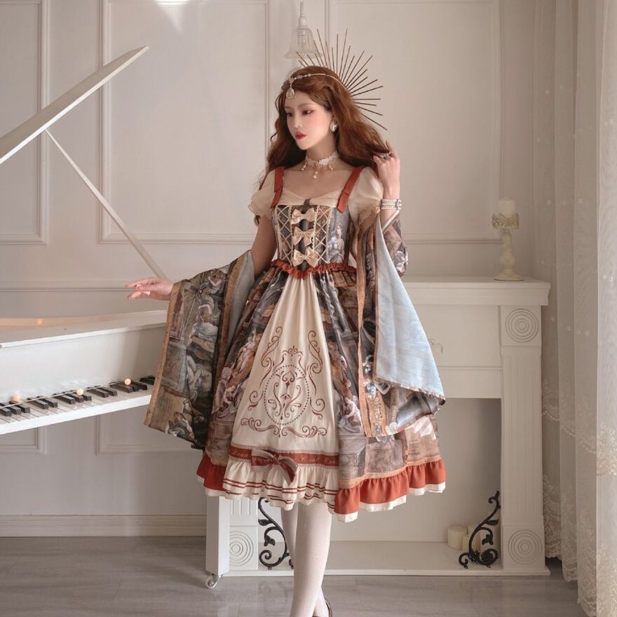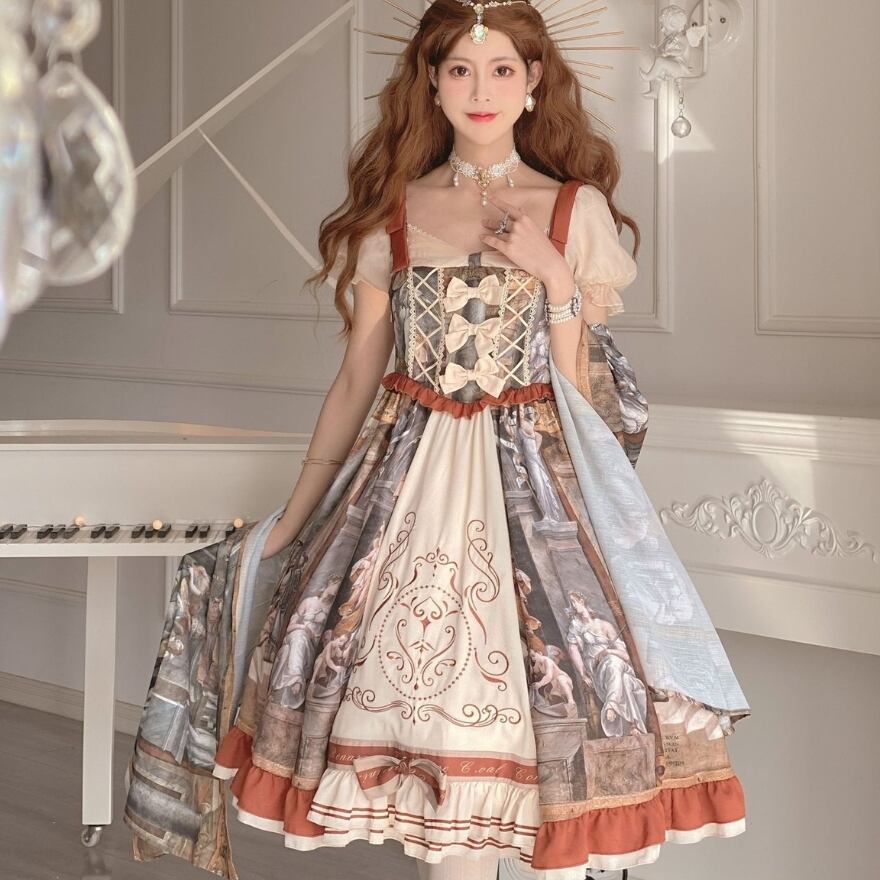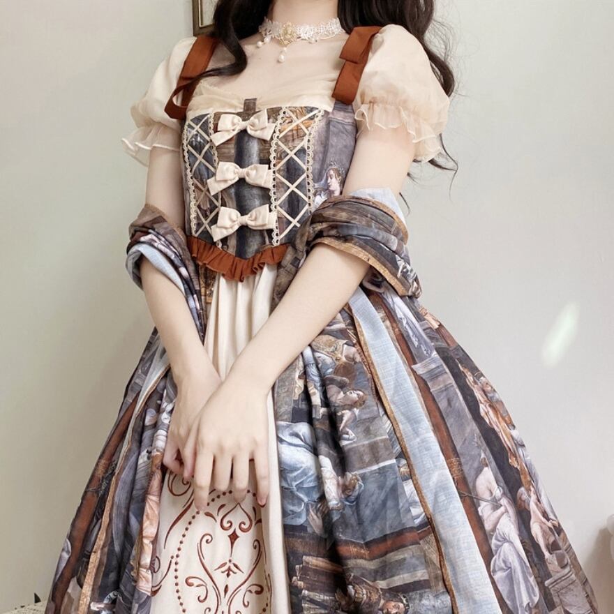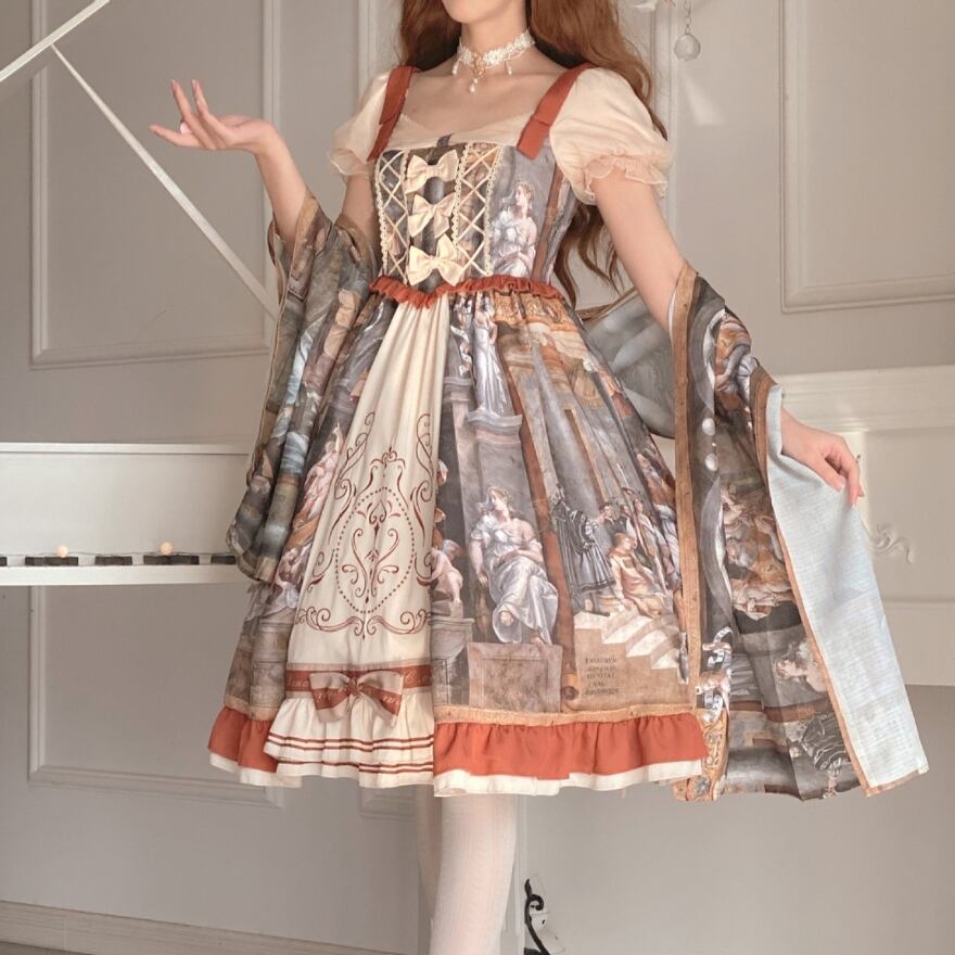 SEASONZ セットアップ ジャンパースカートショール チョーカー 油絵柄 クラロリ エレガント 上品 ティーパーティ お茶会 撮影会 ゆめかわ 原宿スタイル