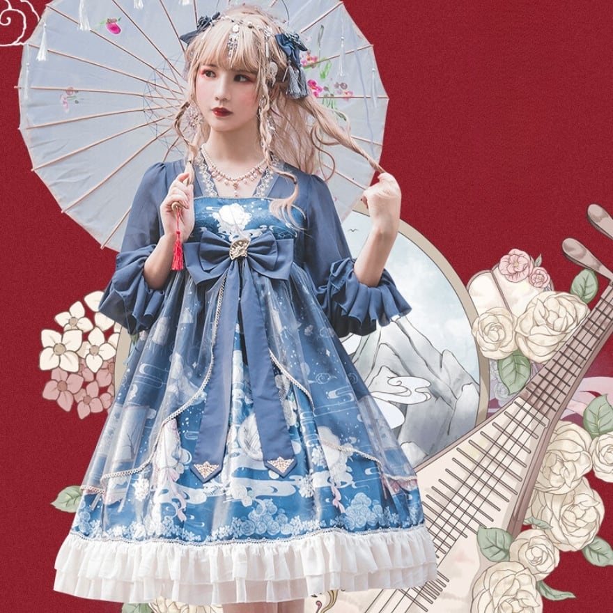 SEASONZ ジャンパースカート ヘアリボン付き 中華ロリィタ 華ロリ ジャンパースカート ブラウス