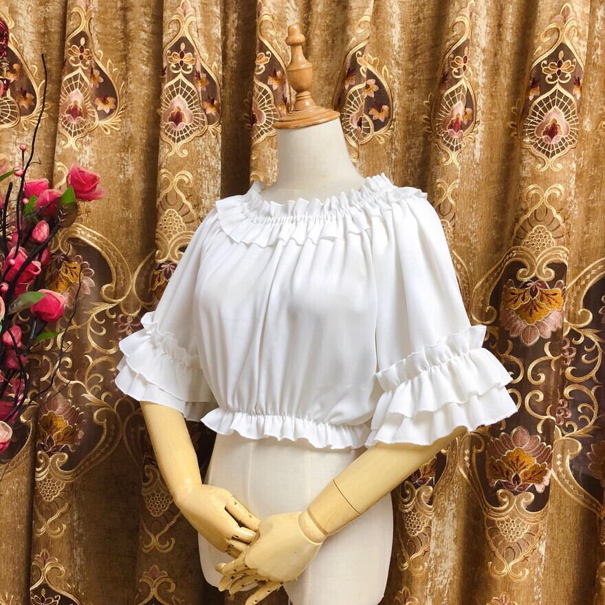 上品なトランペットスリーブが高見えなショート丈ブラウスです