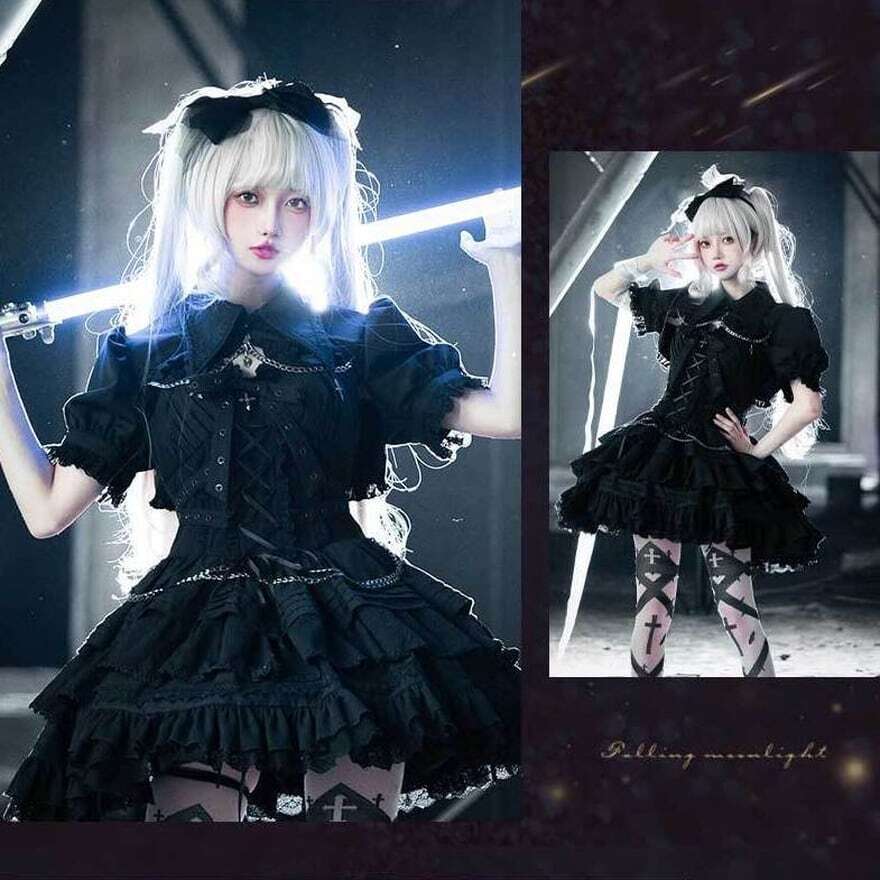 地雷系 地雷女子 ジャンパースカート 契約十字 ゴスロリ 病みかわいい コンカフェ ゴシック 地雷ファッション 原宿スタイル ろりーたふぁっしょん