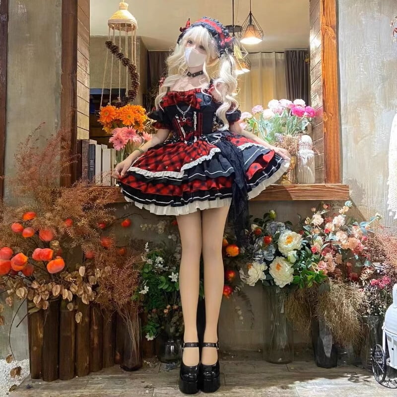 SEASONZ ふわふわ アイドル衣装 チェック柄 ステージ衣装 キラキラ星 原宿スタイル ろりーた 生誕祭 ドールファッション イベント