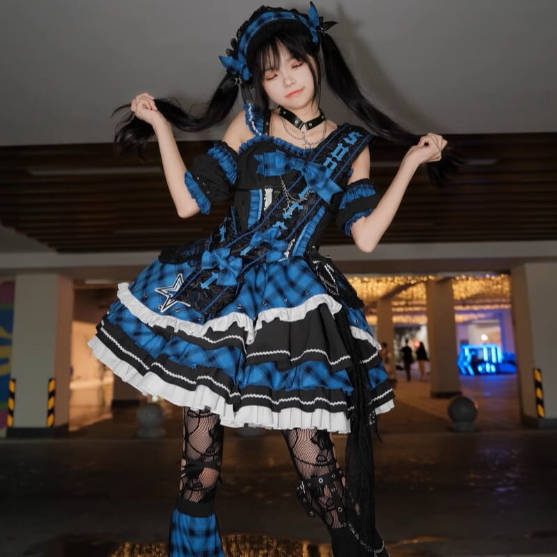 チェック柄のキラキラ星がキュートなふわふわアイドル系衣装です