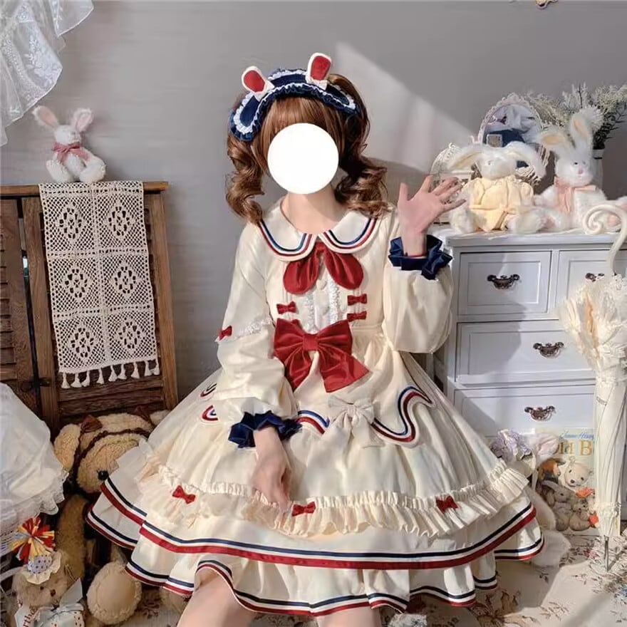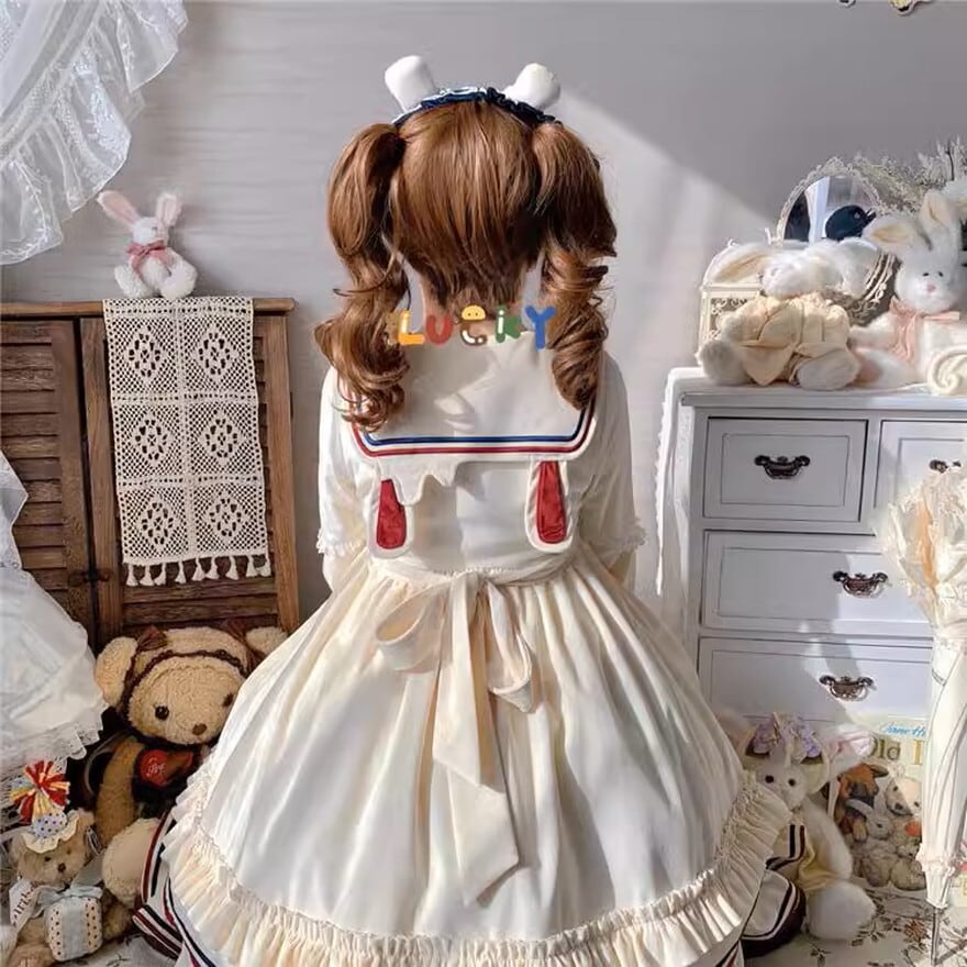 SEASONZ ふわふわ ワンピース メイドワンピース エプロン トリコロールカラー ウサギ耳 セーラー風 ベビードール コンカフェ メイドカフェ 撮影会 衣装 原宿スタイル