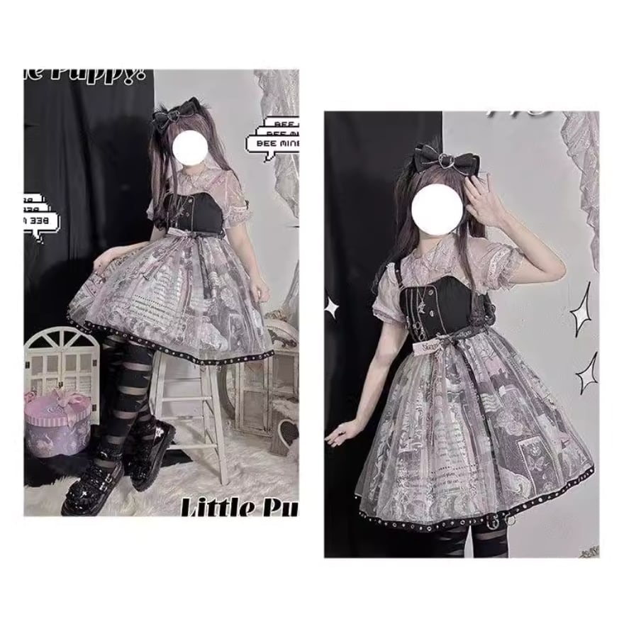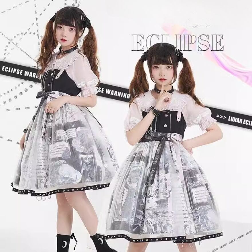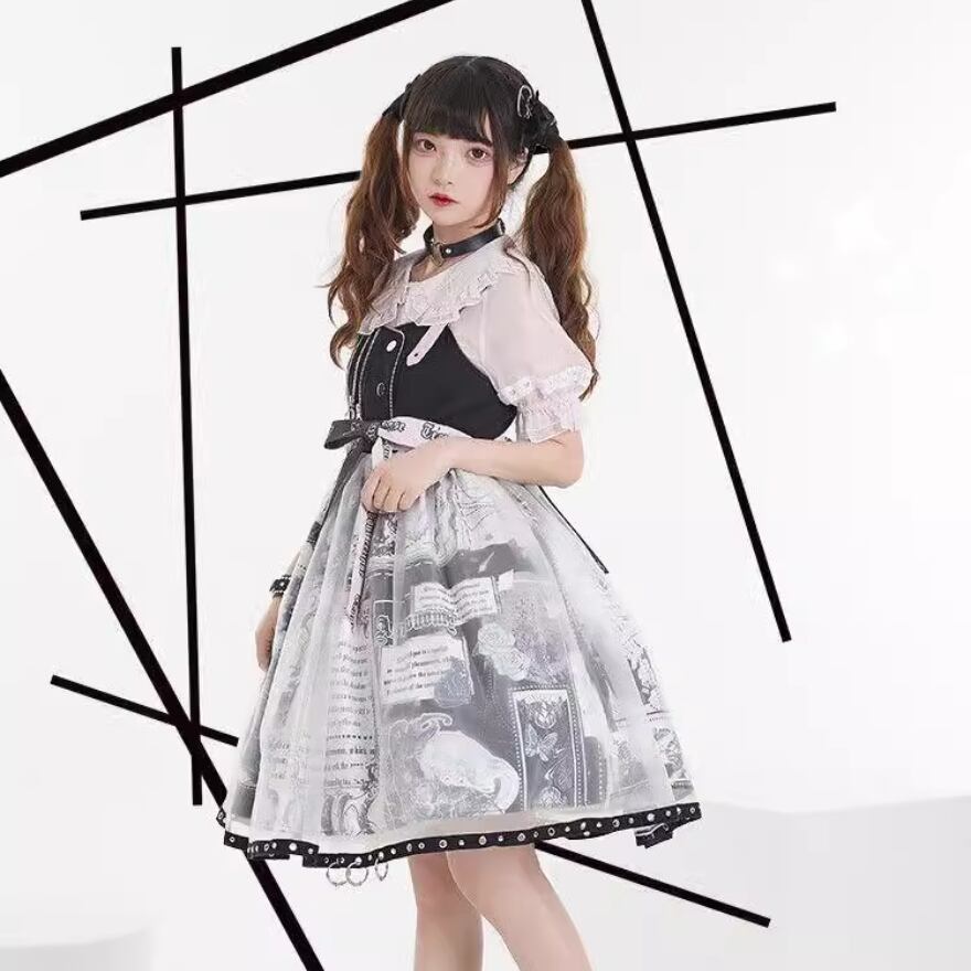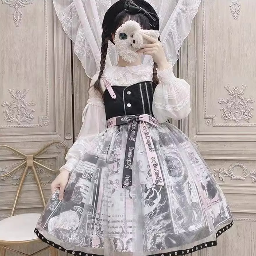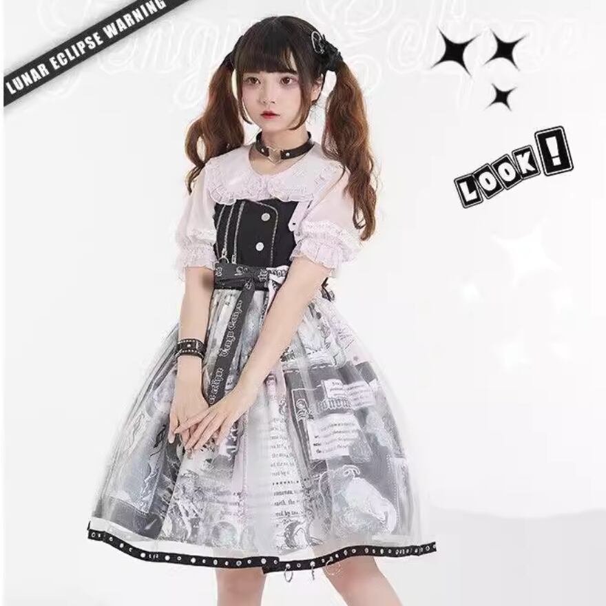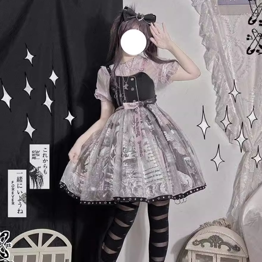 SEASONZ ジャンパースカート ゴスロリ アニメプリント柄 レース レイヤード 原宿スタイル ダークファッション