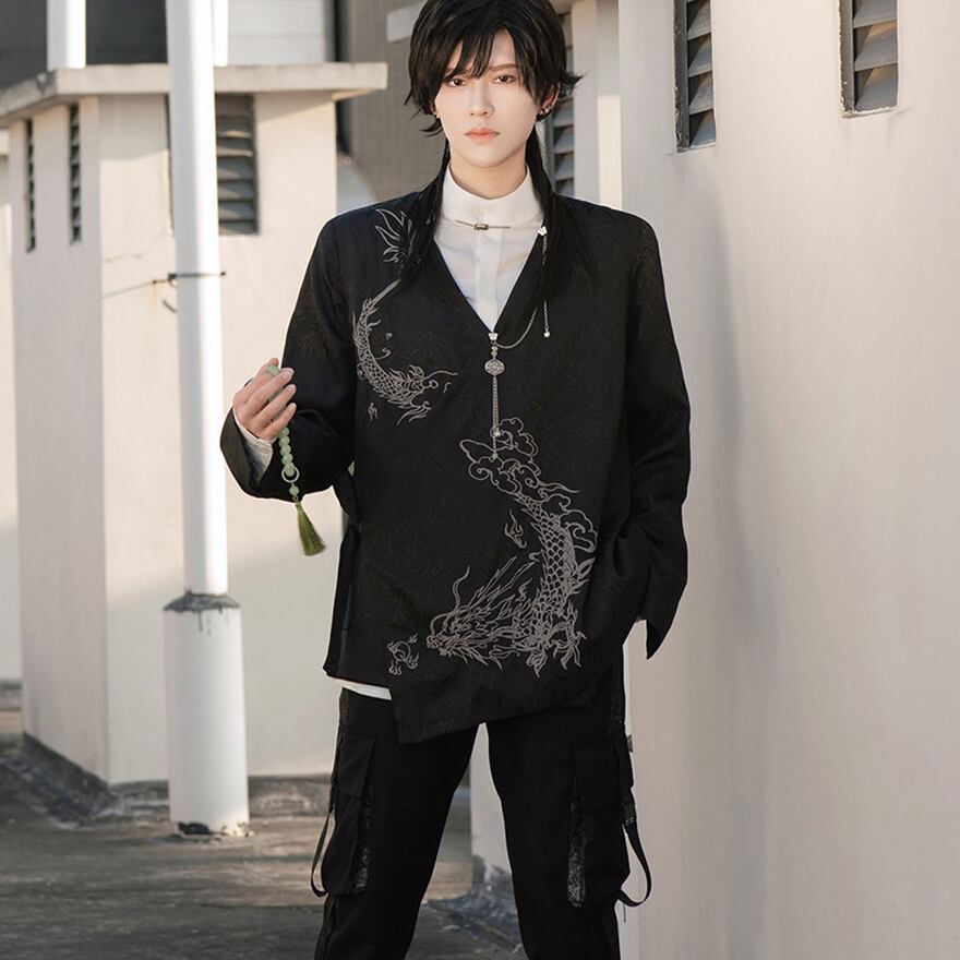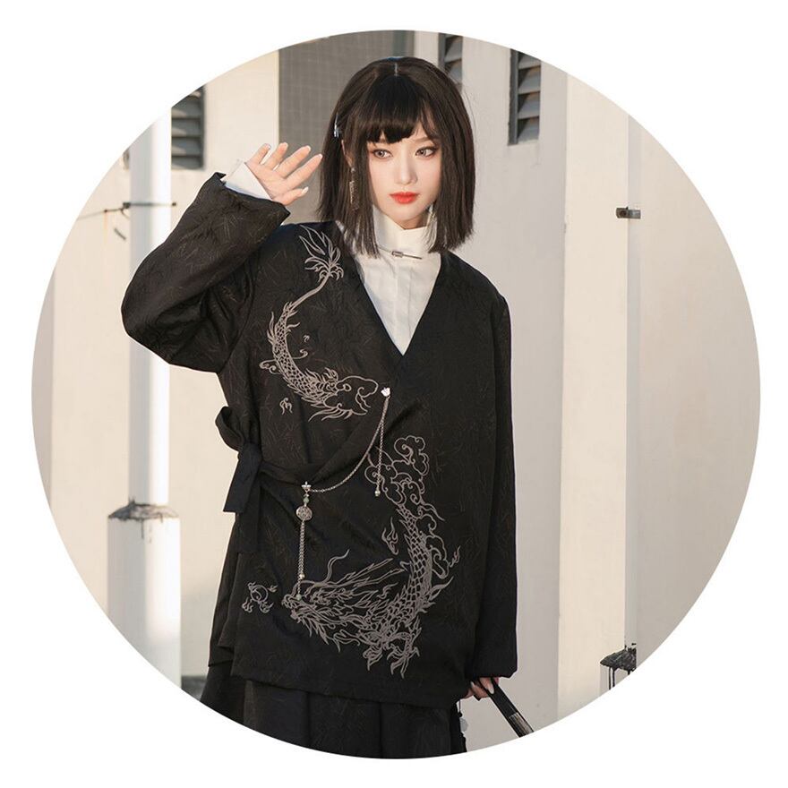 SEASONZ チャイナ風 羽織り 長袖トップス ジャケット 龍刺繍 ドラゴン 病み可愛い ストリート系 ふぁっしょん