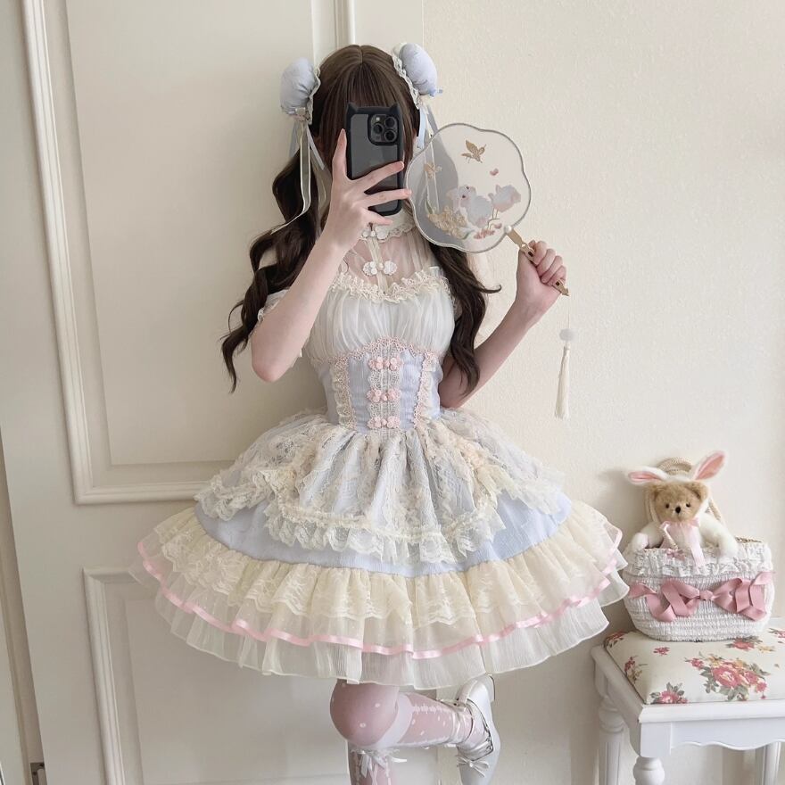 SEASONZ ブラウス 半袖 レース 薄手 原宿スタイル 夢かわいい ロリィタ