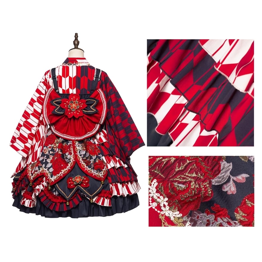 ビジュアルインパクト抜群な豪華絢爛、和装の伝統的な矢絣(ヤガスリ)柄が大正浪漫ただよう花魁風の和装フルセットです。