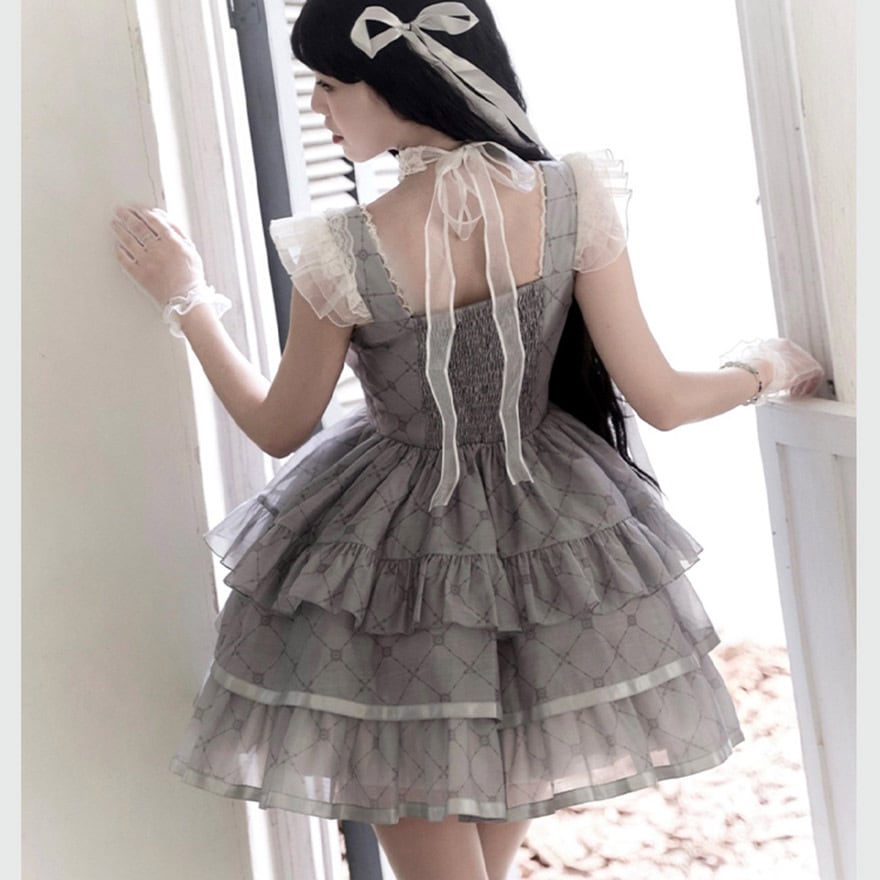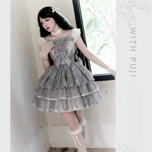 SEASONZ ワンピース ノースリーブ リボン レース ケーキスカート クラロリ 原宿スタイル