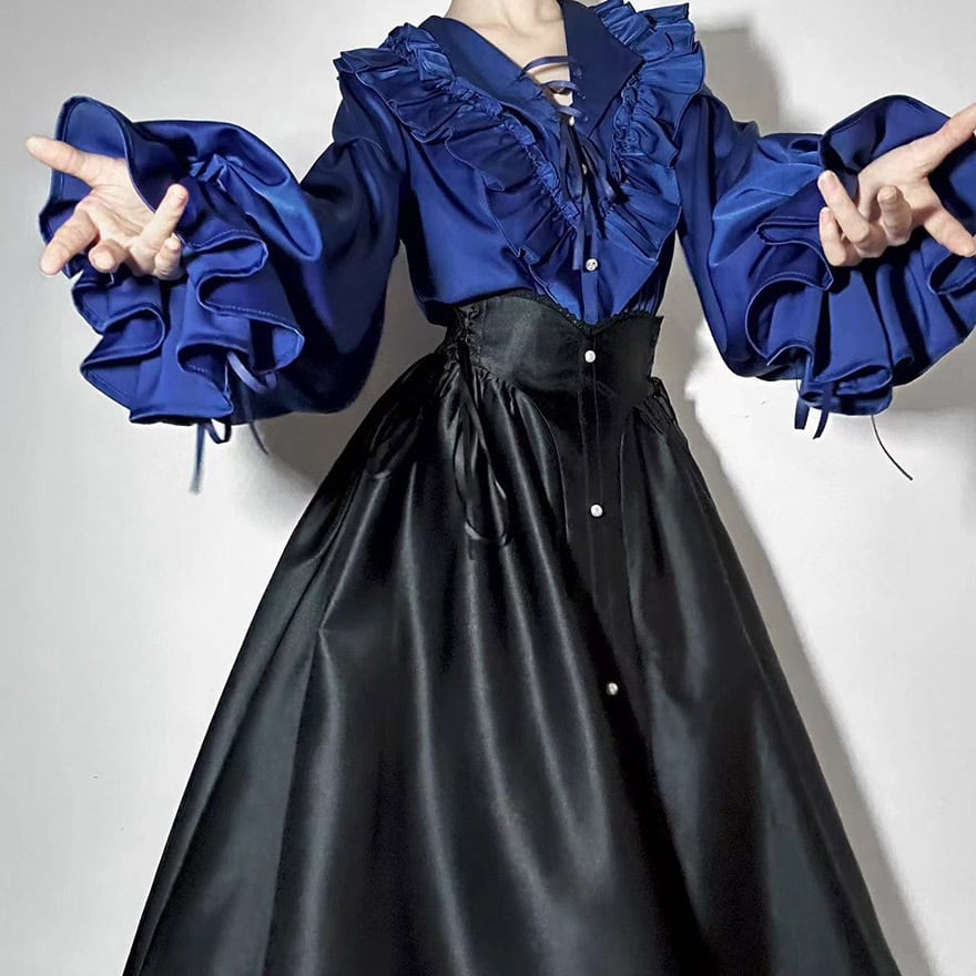SEASONZ 長袖シャツ キャンディスリーブ レースアップ フリル クラロリ 原宿スタイル