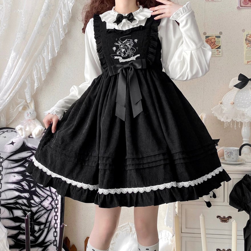 SEASONZ ジャンスカ ワンピース ブラウス 長袖シャツ 2点セット ウエストリボン ゴスロリファッション ベビードール 原宿スタイル