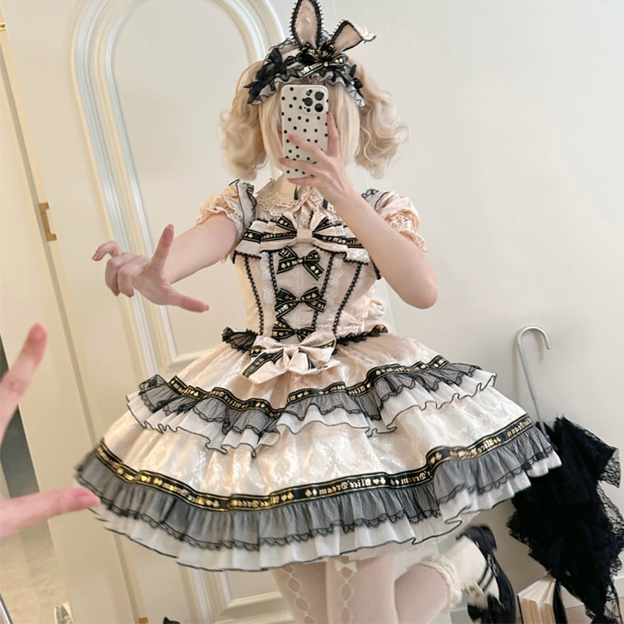 SEASONZ ジャンスカ フリルスカート リボン レース 夢かわいい ベビードール 原宿スタイル
