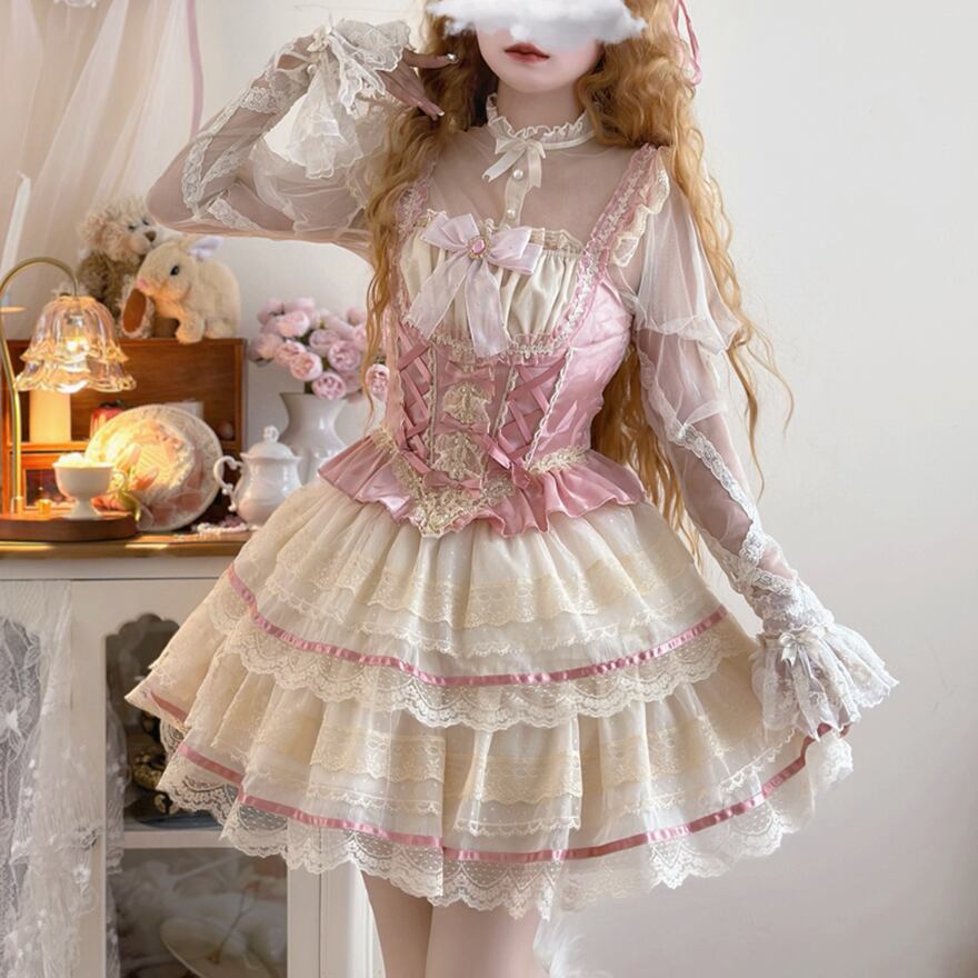 SEASONZ キャミソール スカート レースリボン セットアップ 3点セット レースカバー ベビードール 原宿スタイル