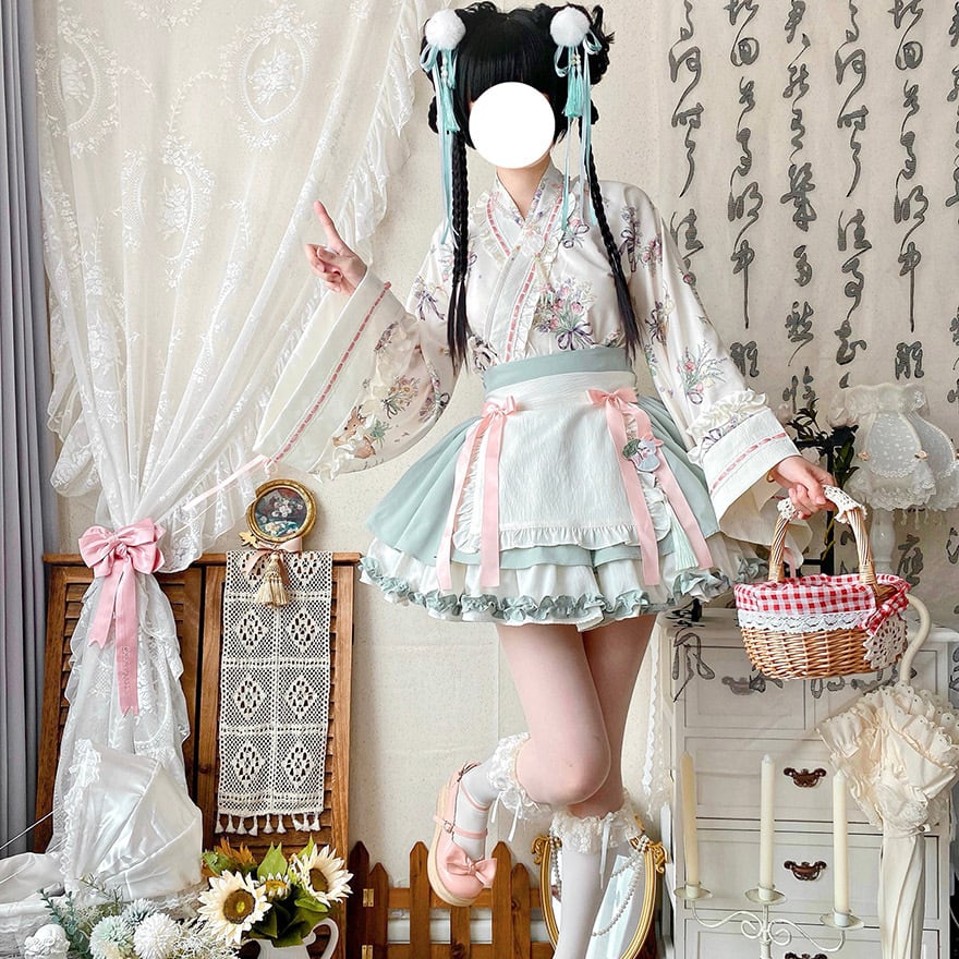 トップス+スカート+エプロンが3点セットになった中華ロリータ服です。