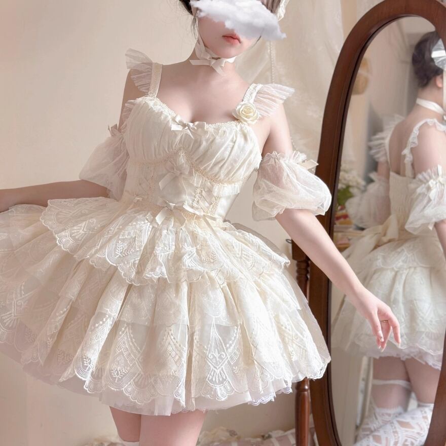 SEASONZ ワンピース レース セットアップ ミニ丈 ホワイトロリータ 原宿スタイル 平成レトロ ろりぃたふぁっしょん かわいい