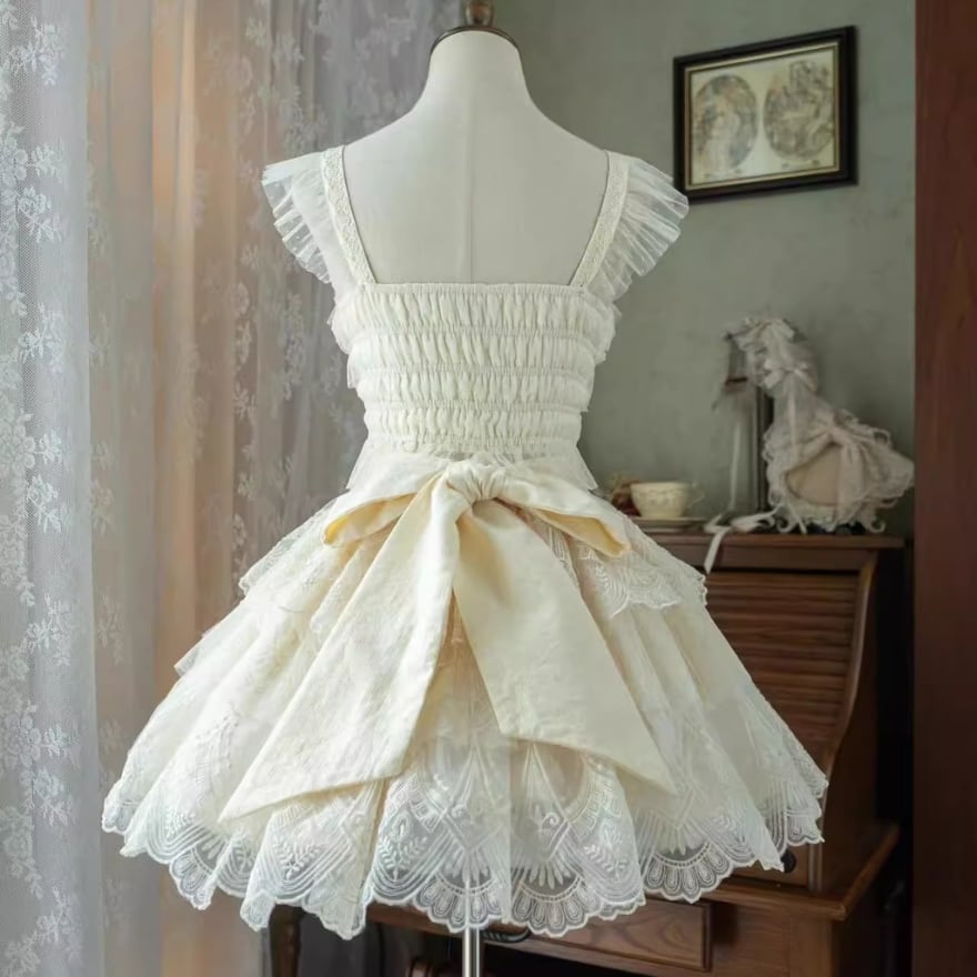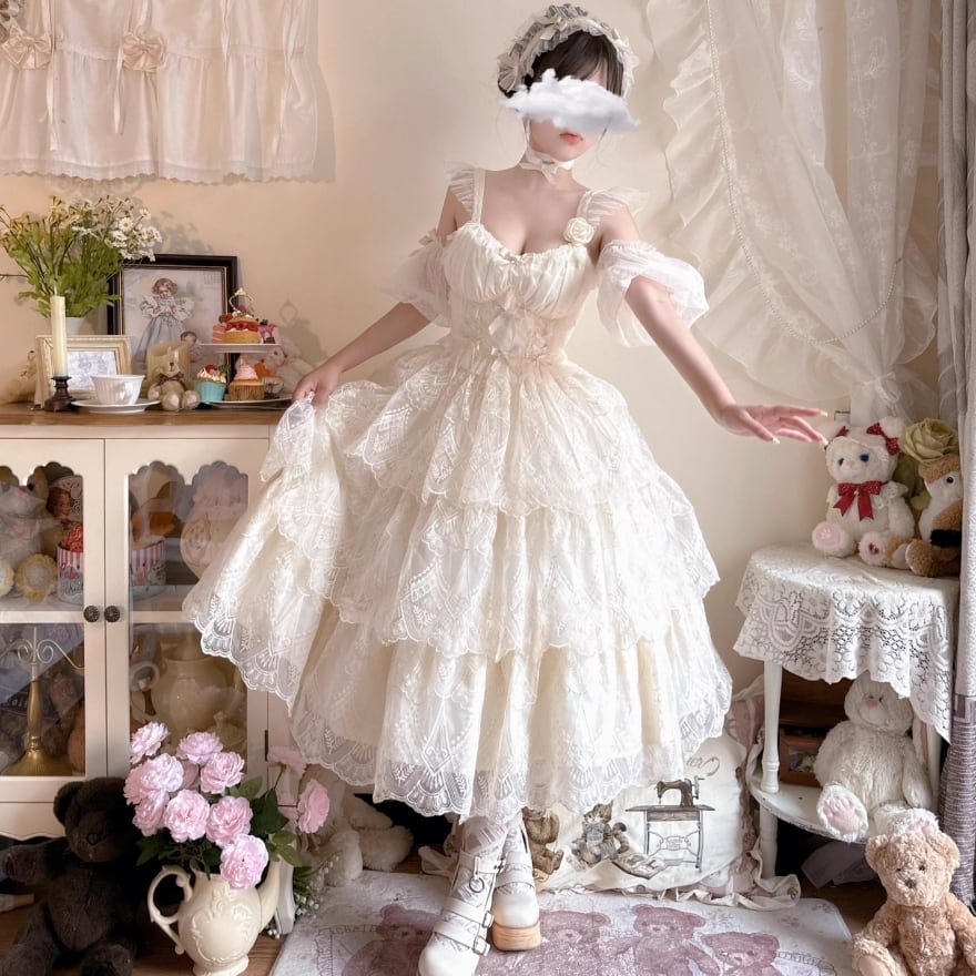 SEASONZ ワンピース レース セットアップ ロング丈 ホワイトロリータ 原宿スタイル 平成レトロ ろりぃたふぁっしょん かわいい