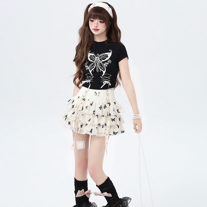 SEASONZ ミニスカート バタフライ 蝶 ケーキスカート Aライン 地雷系 JKロリィタ カジュアル 普段着使い 原宿スタイル