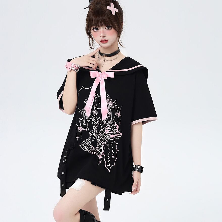 二次元イラストがプリントされたセーラー襟Tシャツです。
