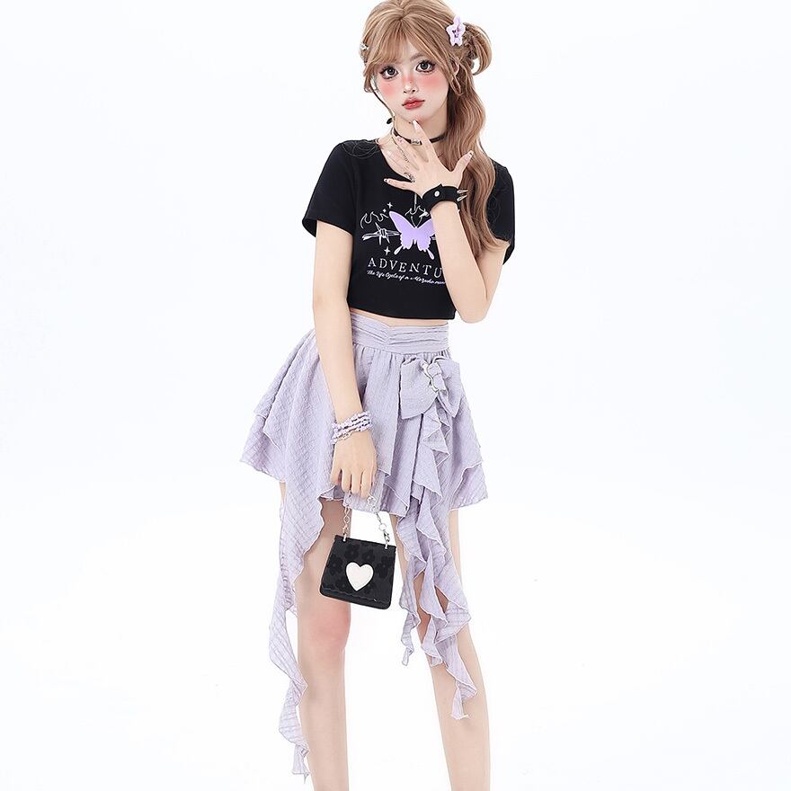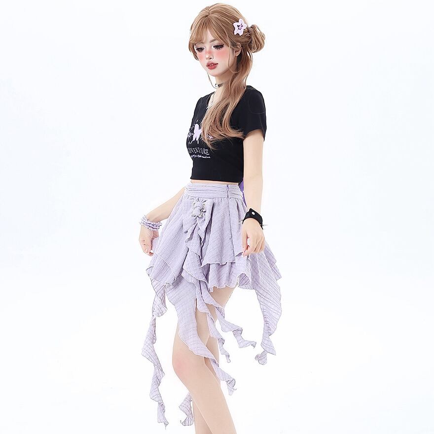 SEASONZ スカート イレギュラーヘム ドレープ リボン 地雷系 JKロリィタ カジュアル 普段着使い 原宿スタイル