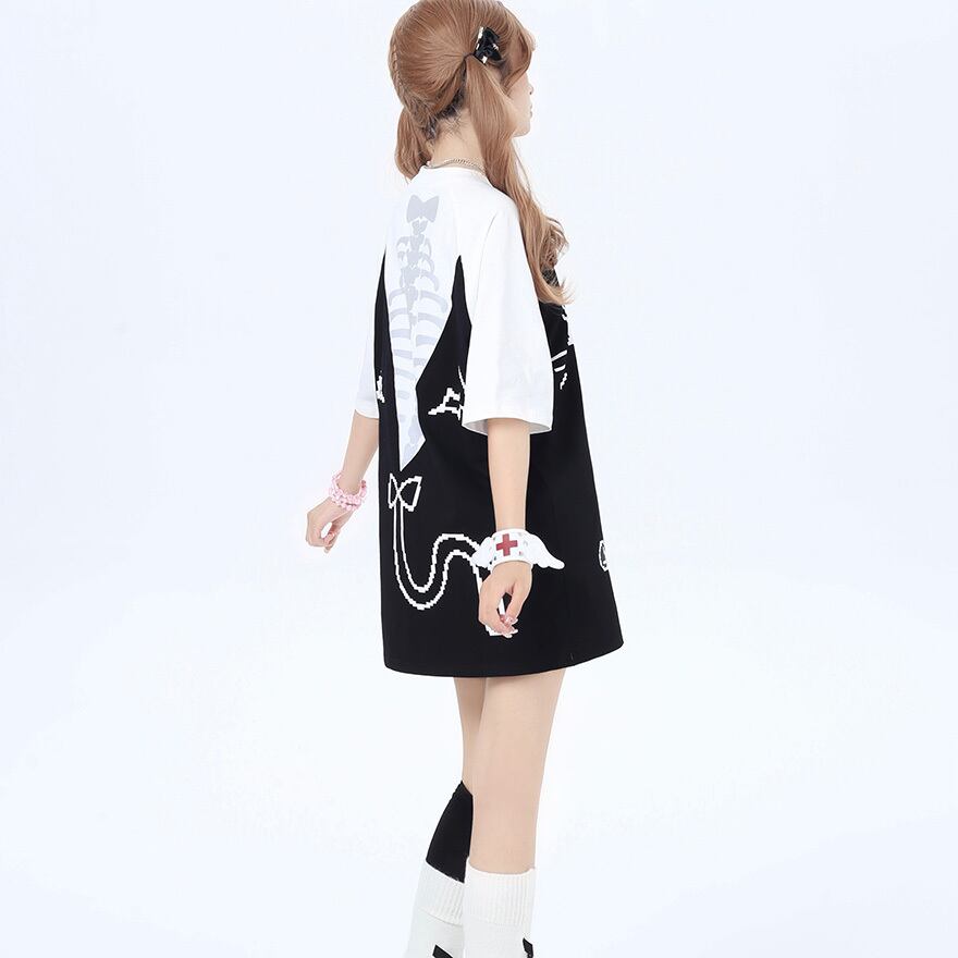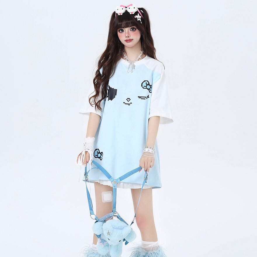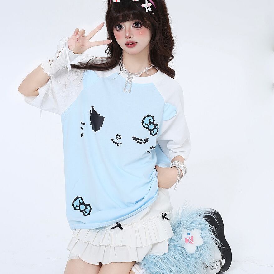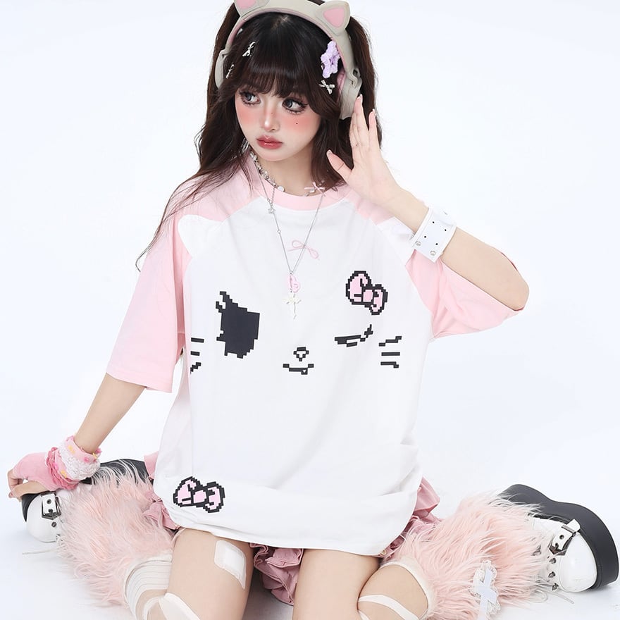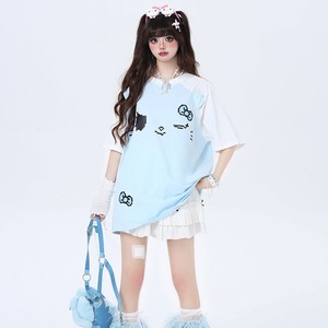 SEASONZ 半袖Tシャツ CRAZYGIRL プルオーバー キティちゃん ゆったり オーバーサイズ 病み可愛い ストリート系 地雷系 量産型 インディーズファッション Y2K