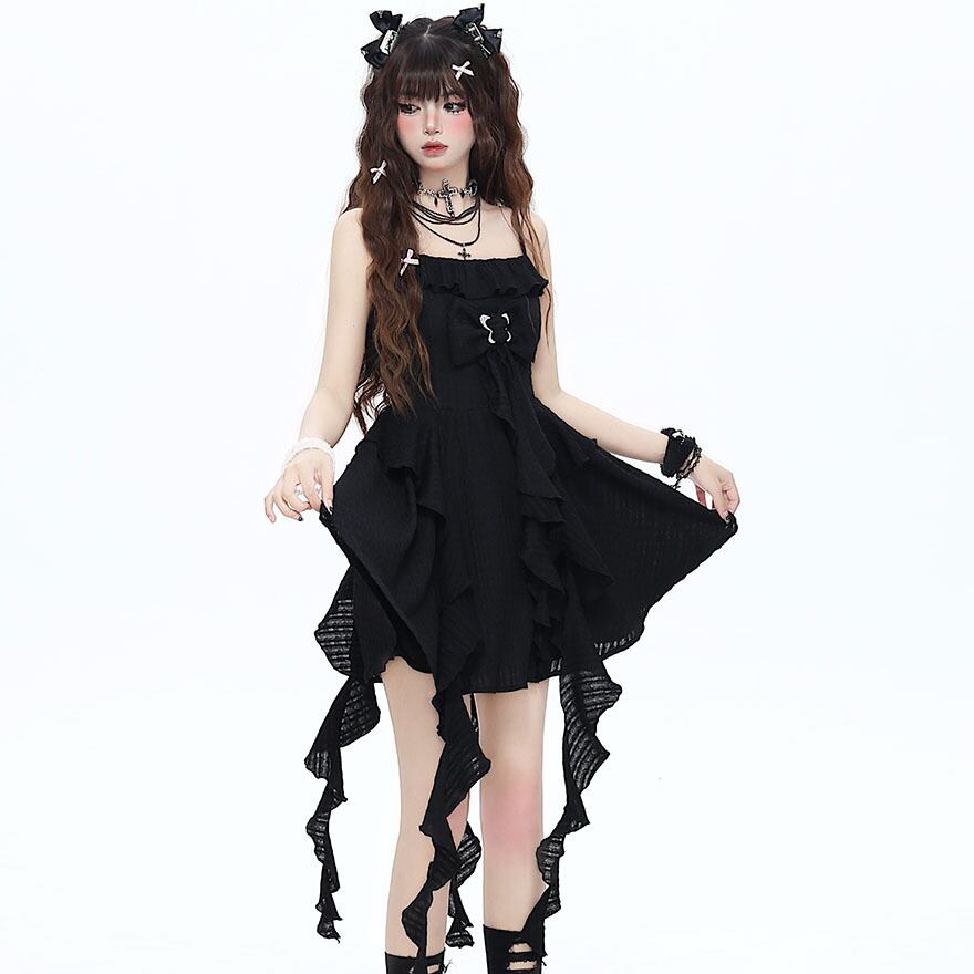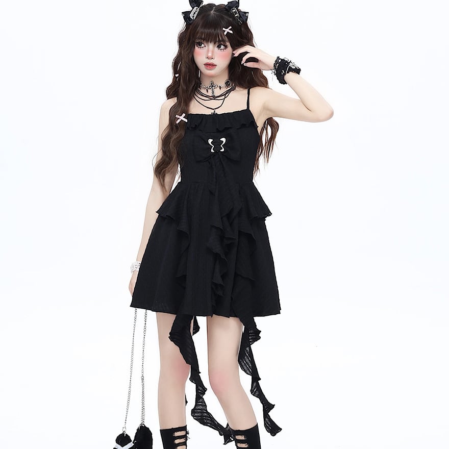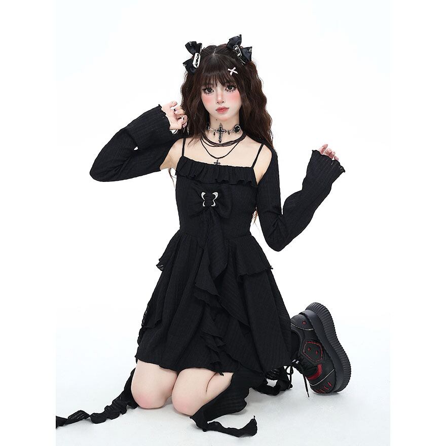 SEASONZ キャミソールワンピース リボン フリル 長袖付き 原宿スタイル JKロリィタ かわいい 量産型 地雷系