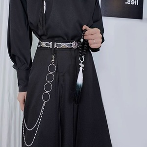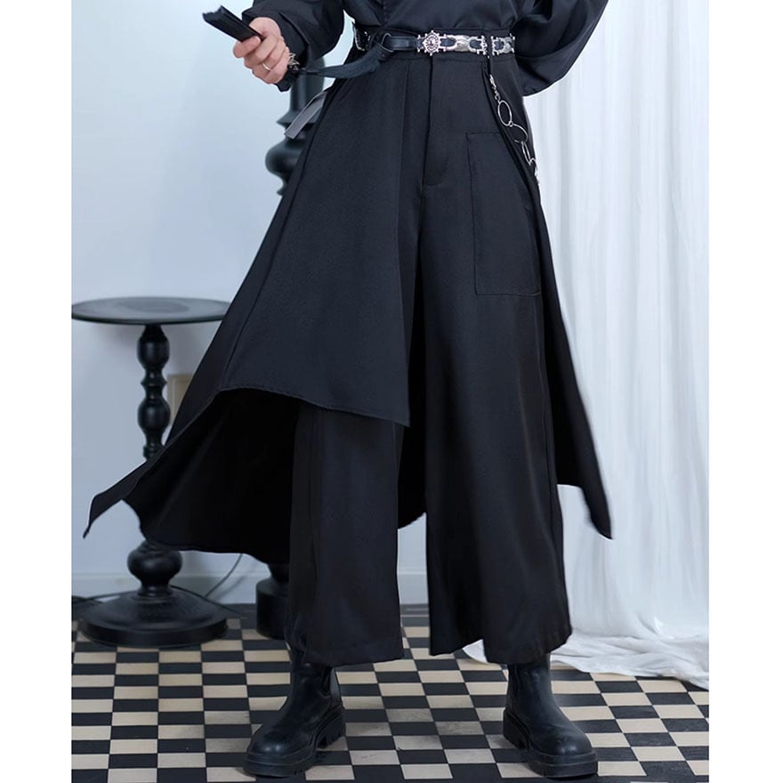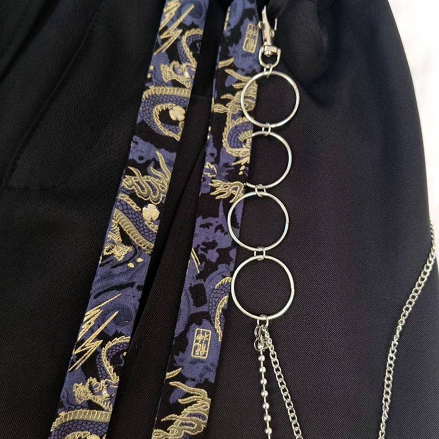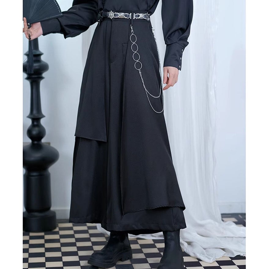 SEASONZ チャイナ風 ワイドパンツ ユニセックス リングチェーン レイヤード風 原宿スタイル JKロリィタ かわいい 量産型 地雷系