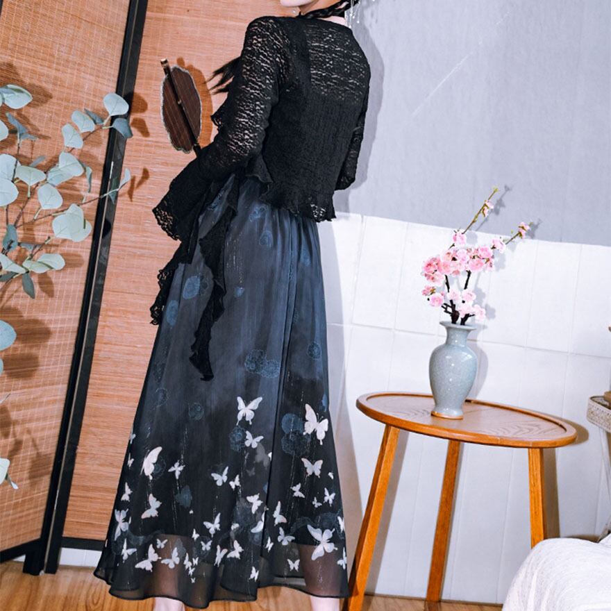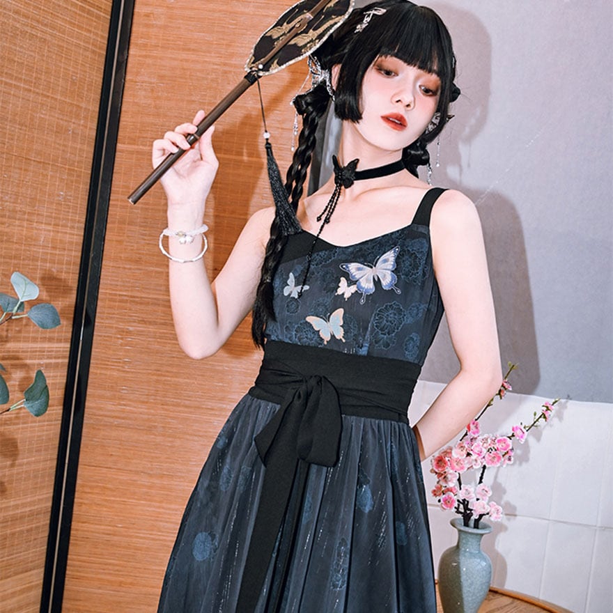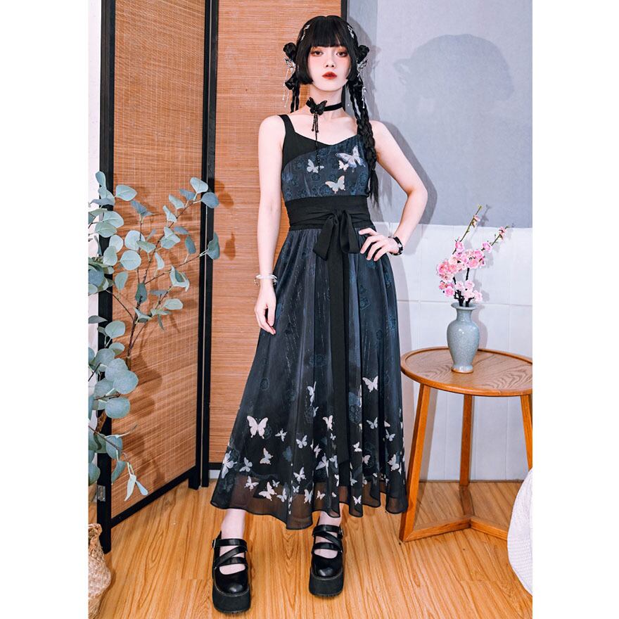 SEASONZ キャミソールワンピース ドレス ロングスカート 蝶 バタフライ シアー 原宿スタイル JKロリィタ かわいい 量産型 地雷系