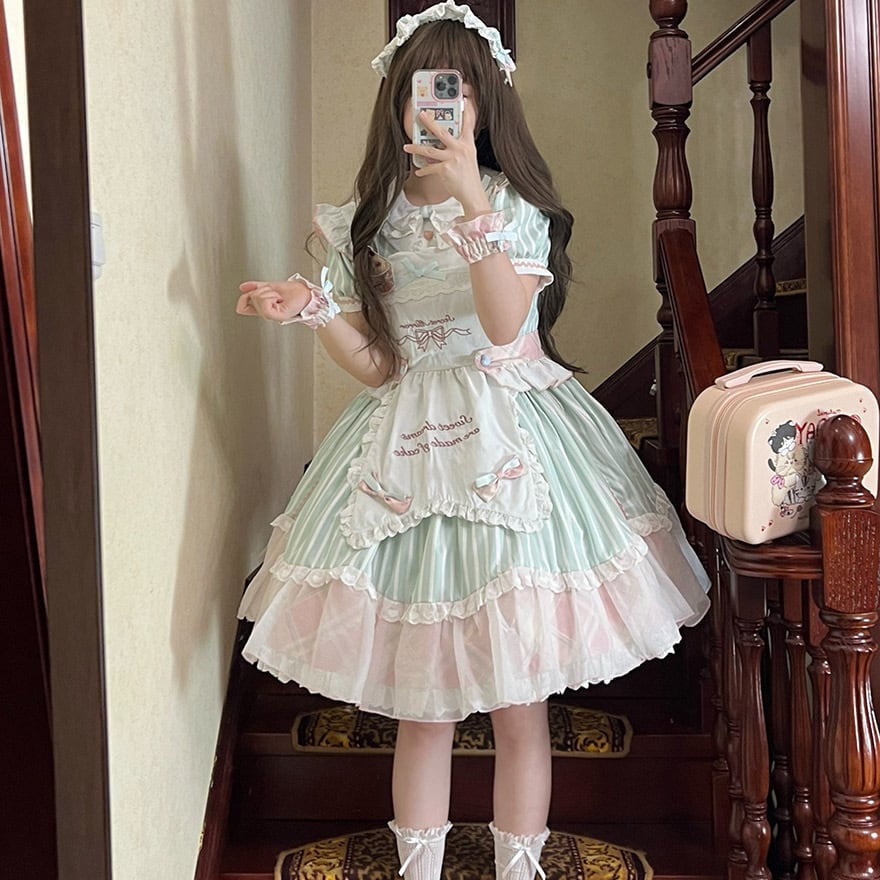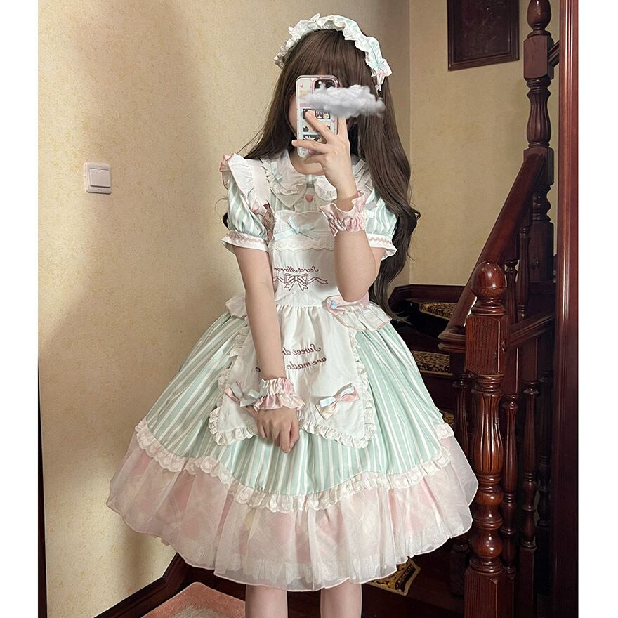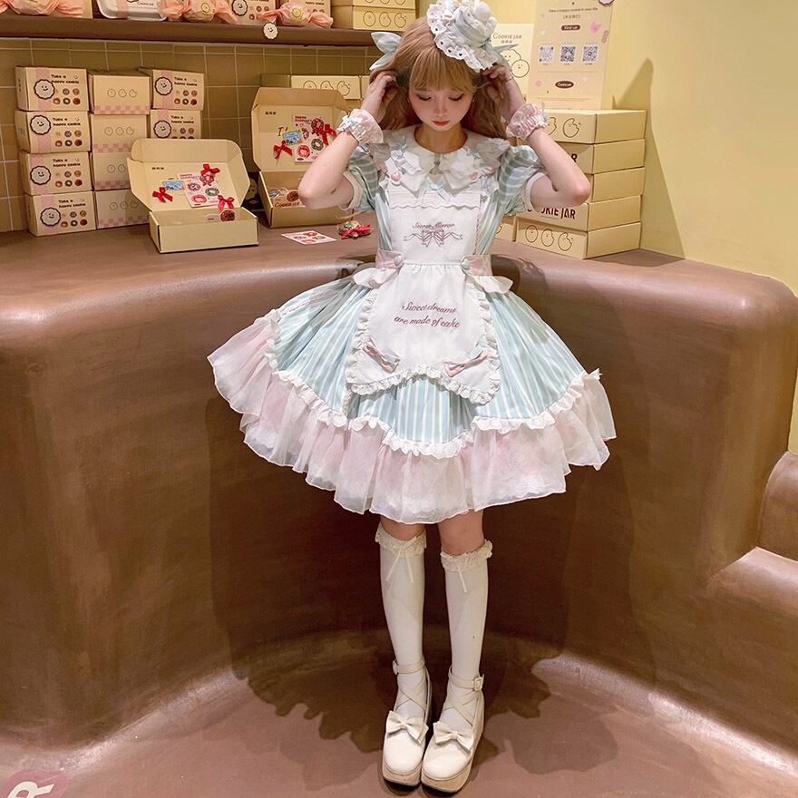 SEASONZ ワンピース エプロン ヘッドドレス シルクハット 夢かわいい フルセット 6点セット 原宿スタイル 生誕祭 ベビードール