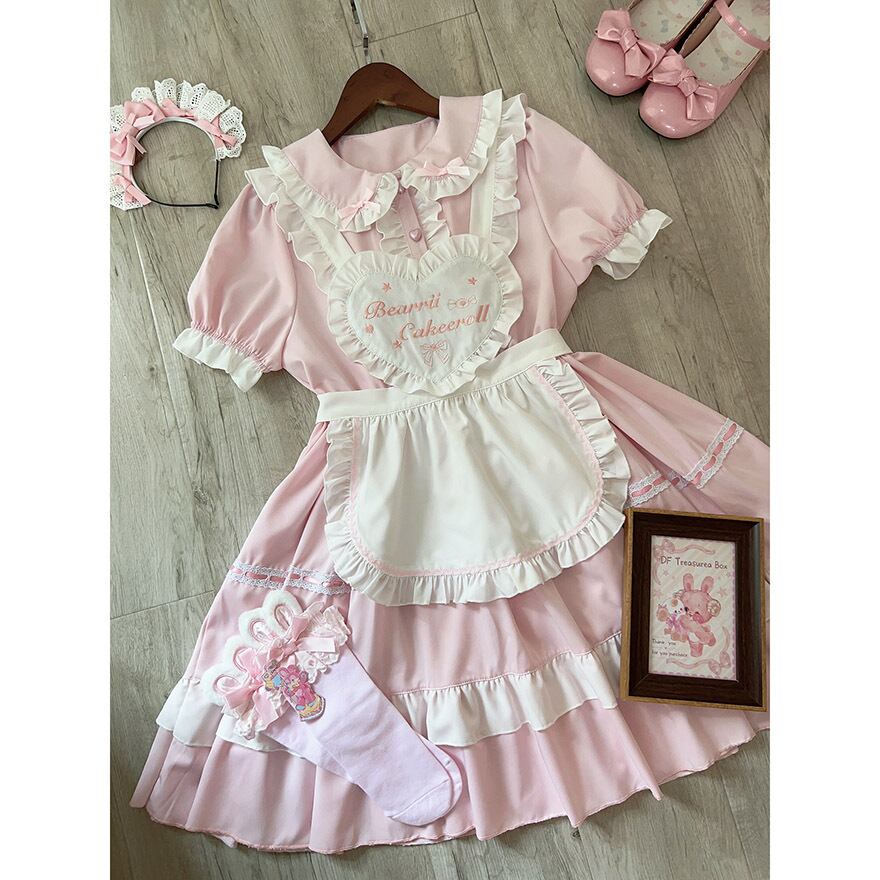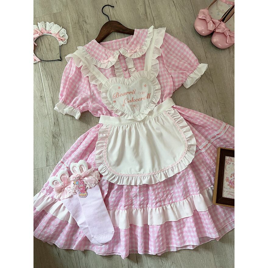 メイド服 ワンピース ドレス 3点セット カチューシャ エプロン メイドカフェ イベント衣装 コンカフェ