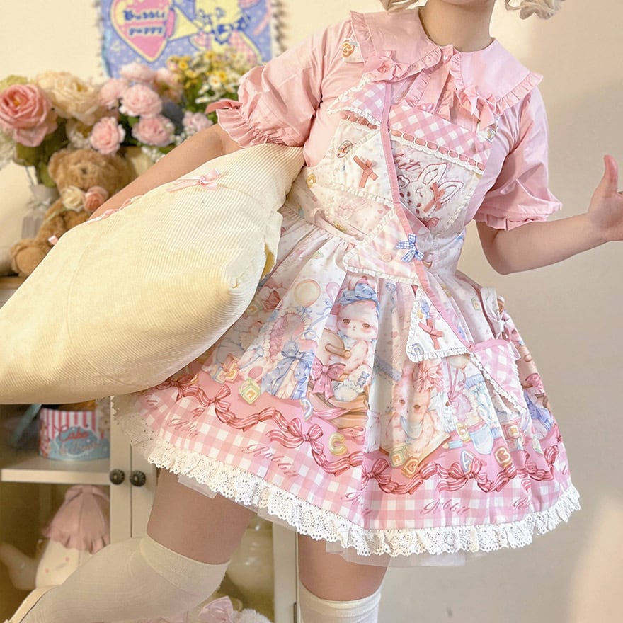SEASONZ 半袖ブラウス ハートボタン フリル パフスリーブ うさぎ耳 夢かわいい ウサギ耳 原宿スタイル
