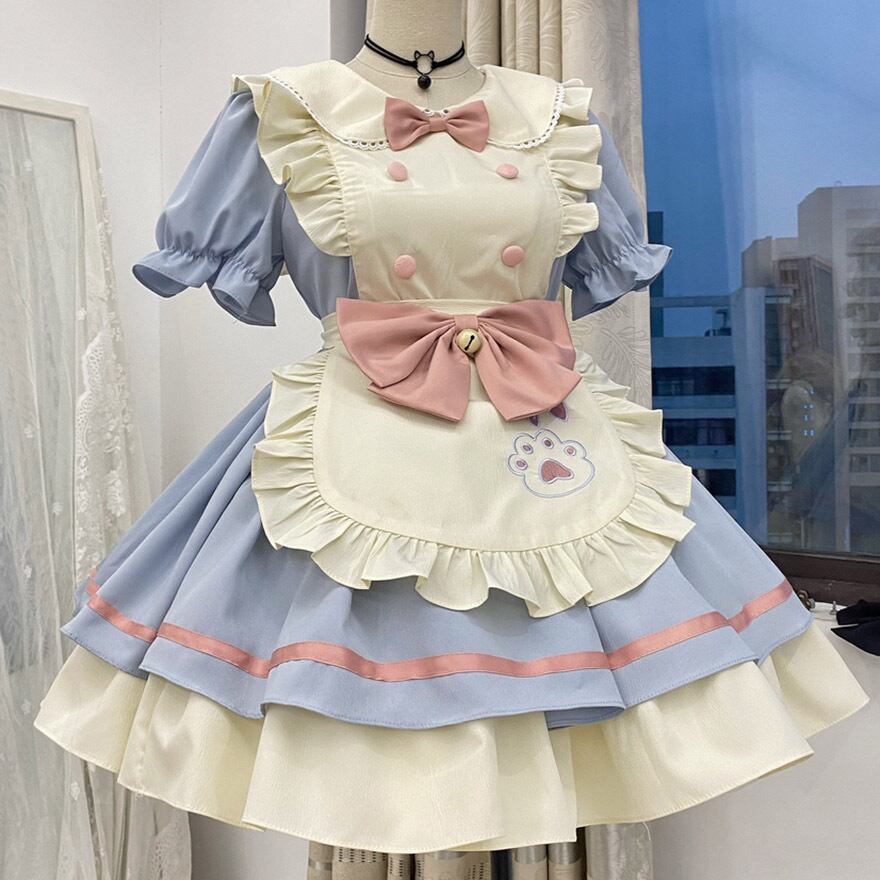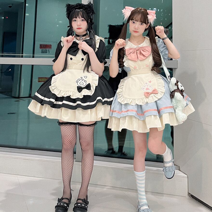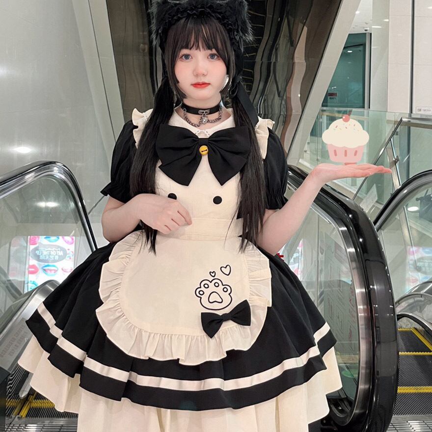 SEASONZ ワンピース パフスリーブ フリル リボン エプロン メイド服 コンカフェ メイドカフェ 原宿スタイル