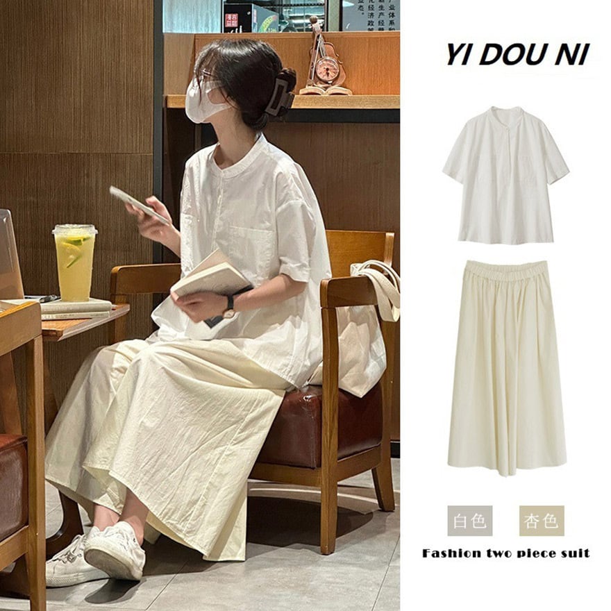 SEASONZ 半袖ブラウス シャツ ワイドパンツ セットアップ カジュアル 普段着使い 原宿スタイル