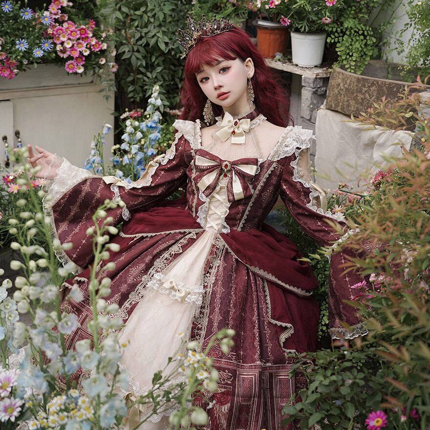 長袖ワンピース ドレス エレガント princess クラロリ お姫様ドレス 豪華 上品 イベント衣装 宮廷風 概念コーデ 原宿スタイル 撮影会衣装 お茶会